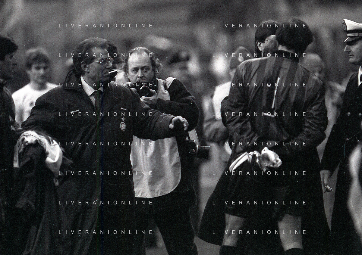 NEG-02-01-1994 MILANO CAMPIONATO DI CALCIO SERIE A INTER-ATALANTA 1-2 NELLA FOTO LITE TRA WALETR ZENGA E ANDREA VALDINOCI ALLENATORE ATALANTA AG ALDO LIVERANI SAS