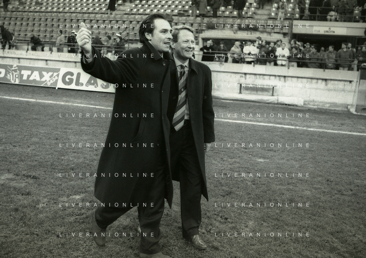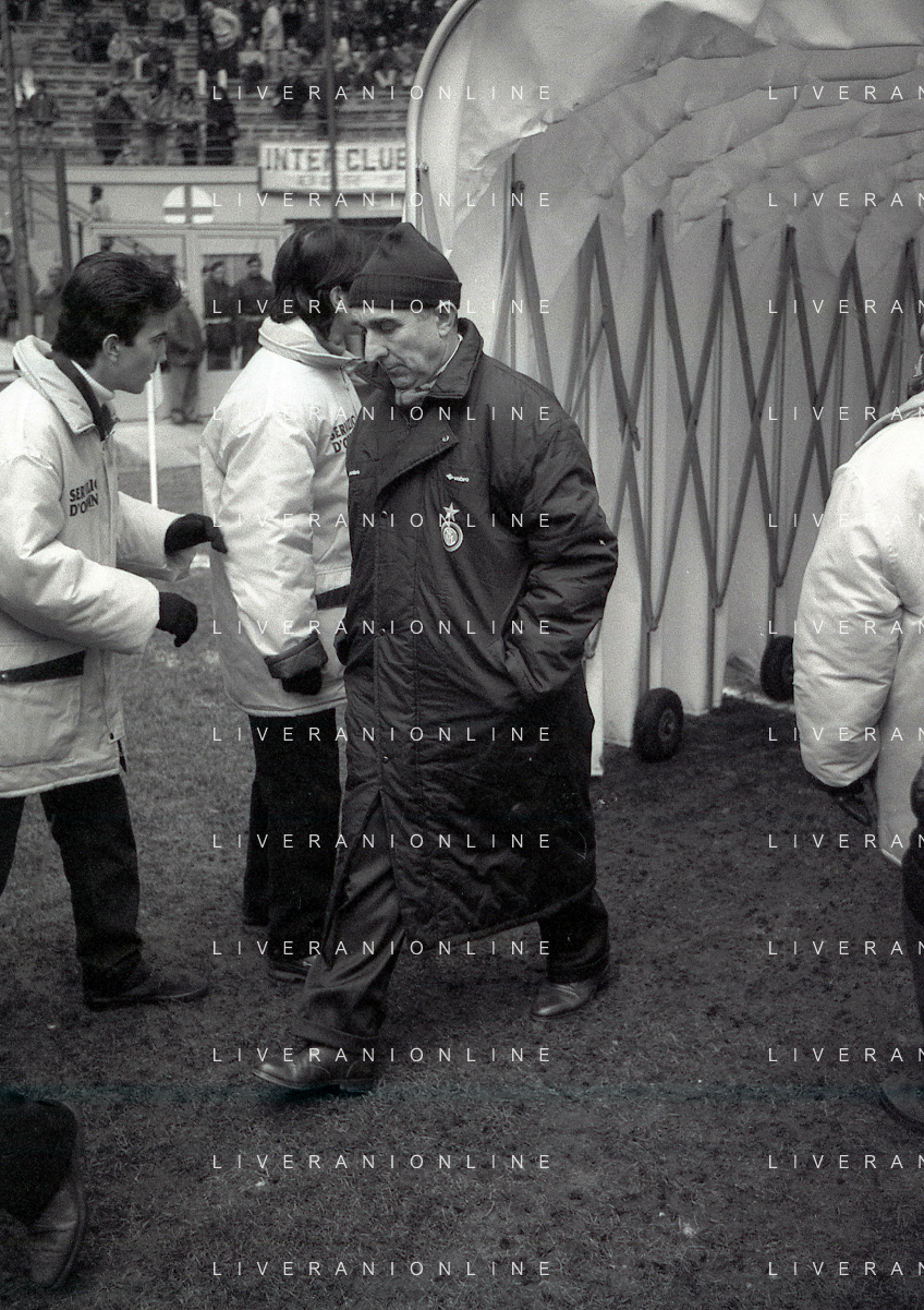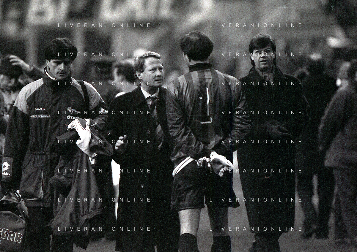 NEG-02-01-1994 MILANO CAMPIONATO DI CALCIO SERIE A INTER-ATALANTA 1-2 NELLA FOTO ANDREA VALDINOCI E CESARE PRANDELLI ALLENATORE ATALANTA CALCIO AG ALDO LIVERANI SAS