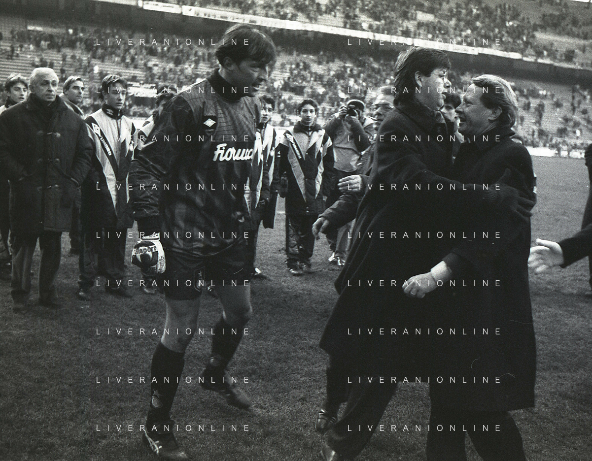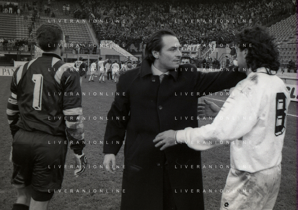 NEG-02-01-1994 MILANO CAMPIONATO DI CALCIO SERIE A INTER-ATALANTA 1-2 NELLA FOTO FABRIZIO FERRON CON CESARE PRANDELLI E LUCIANO DE PAOLA AG ALDO LIVERANI SAS