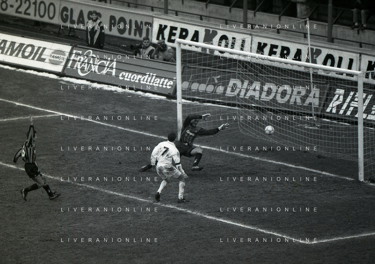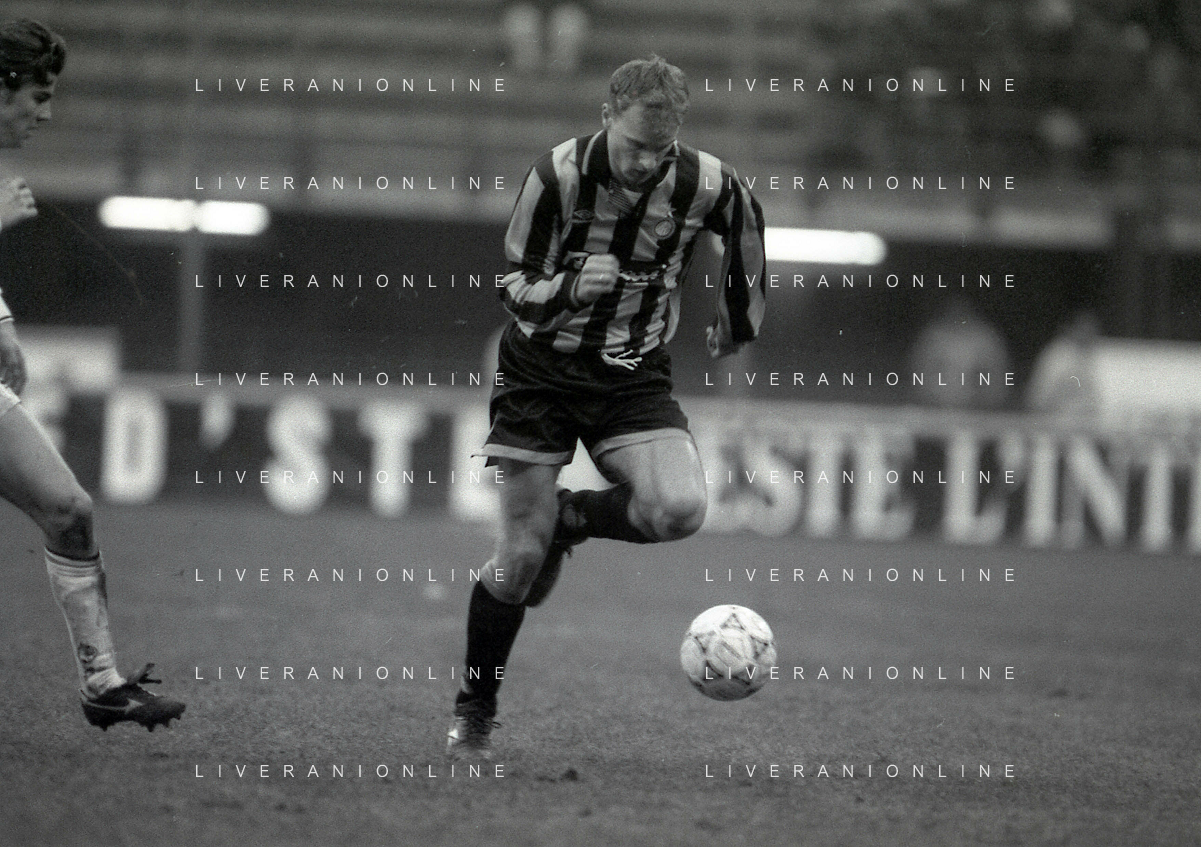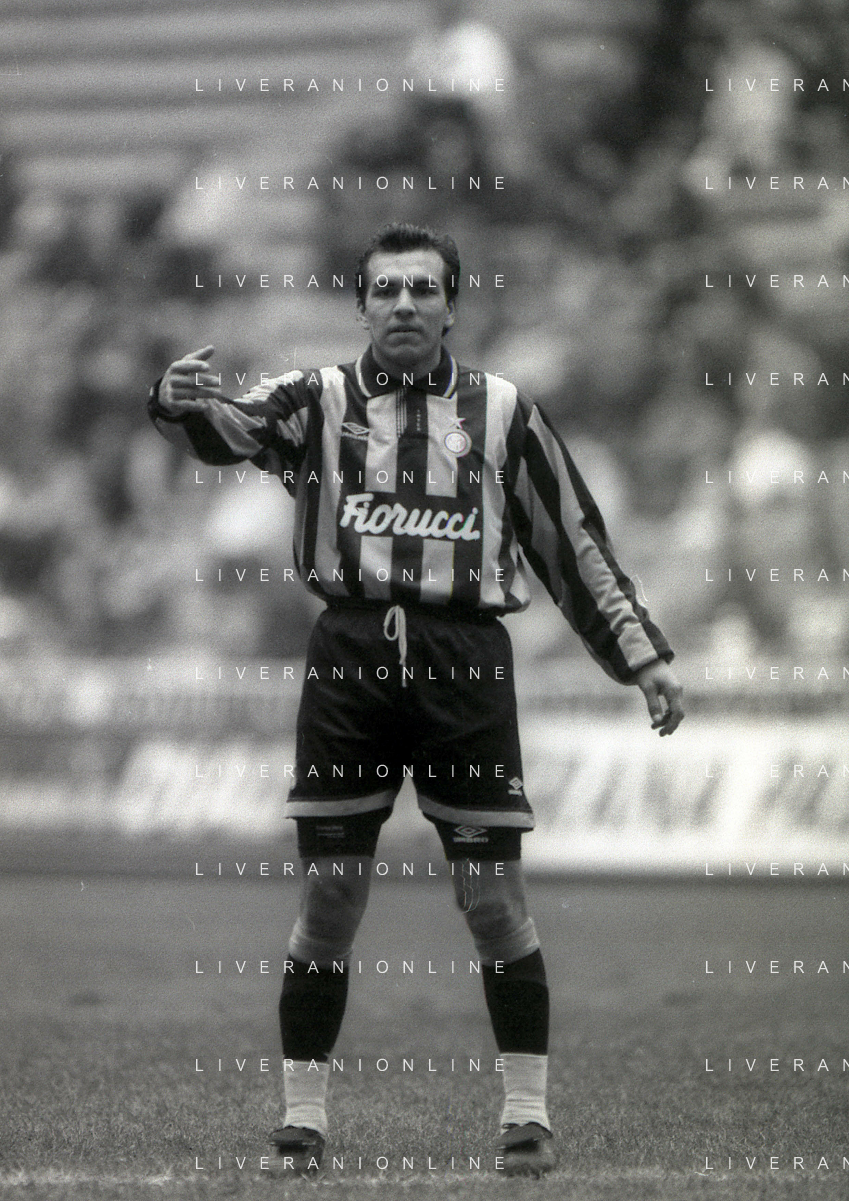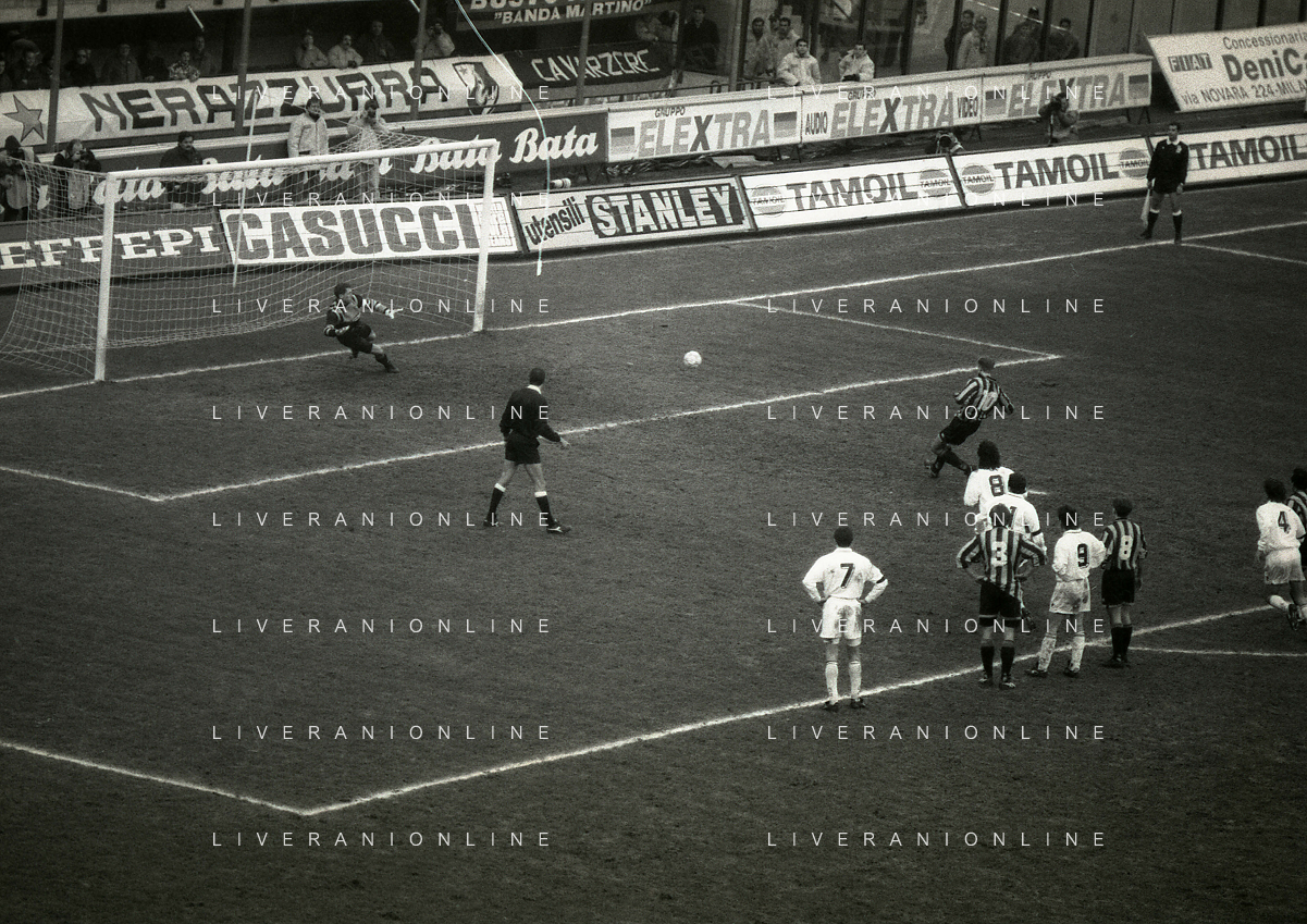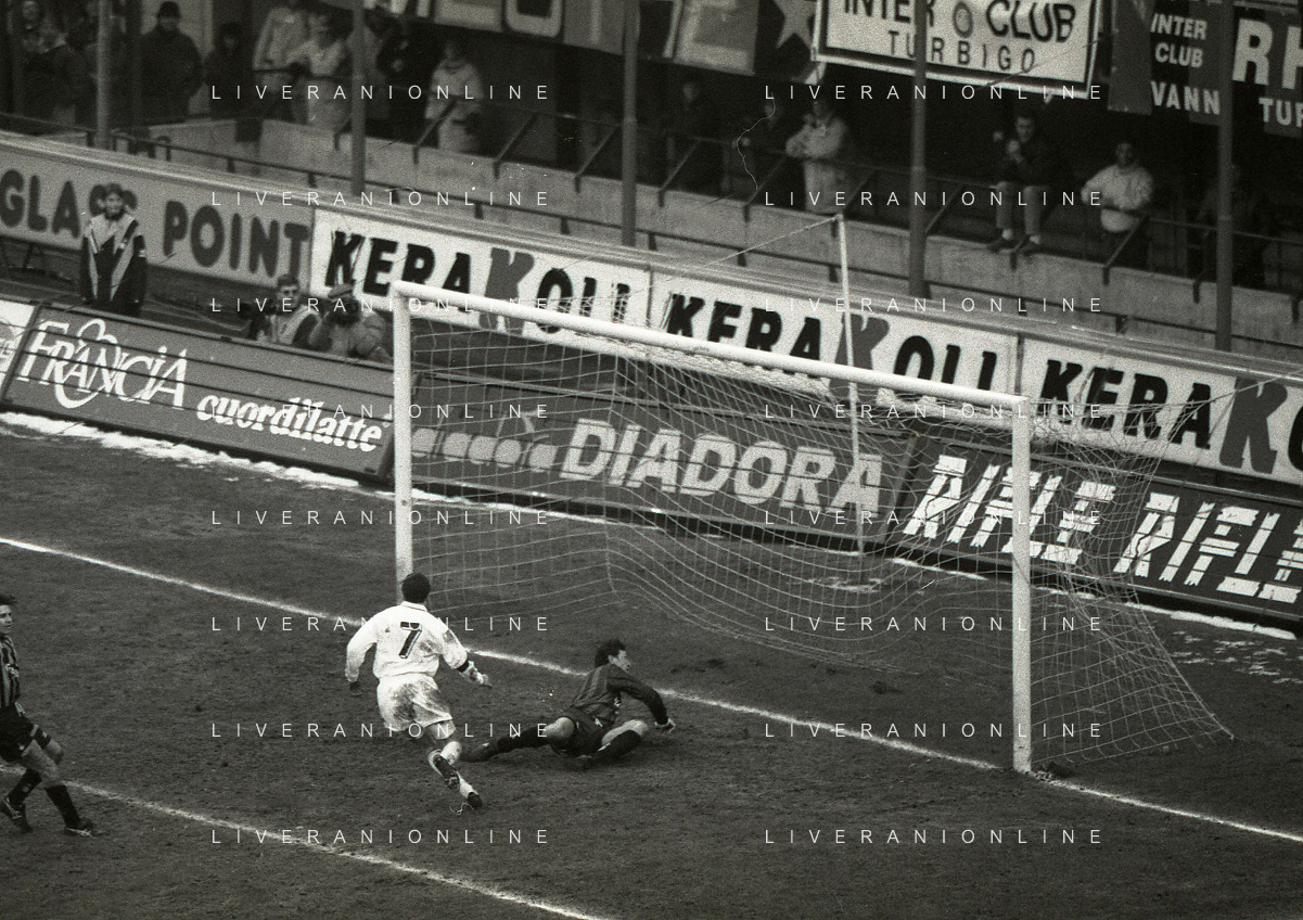 NEG-02-01-1994 MILANO CAMPIONATO DI CALCIO SERIE A INTER-ATALANTA 1-2 NELLA FOTO GIUSEPPE BERGOMI-ANTONIO MANICONE E SERGIO BATTISTINI AG ALDO LIVERANI SAS