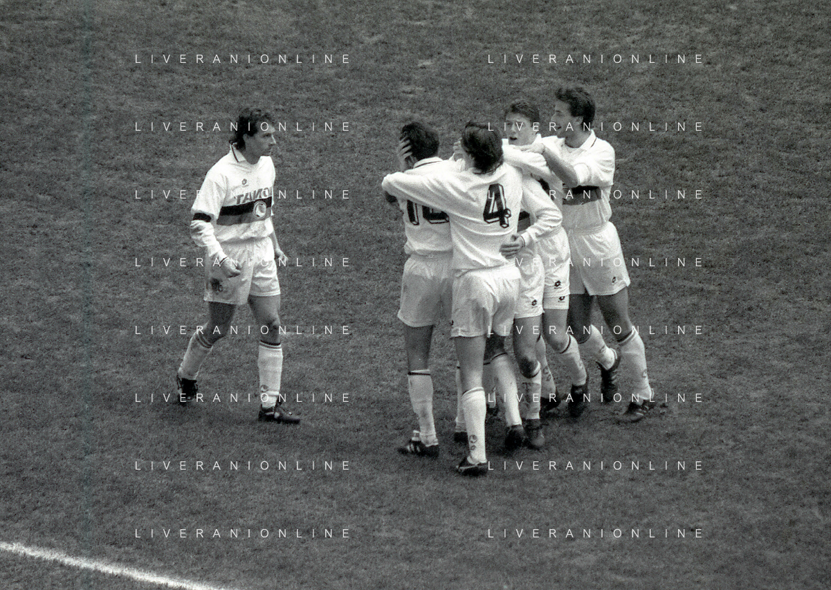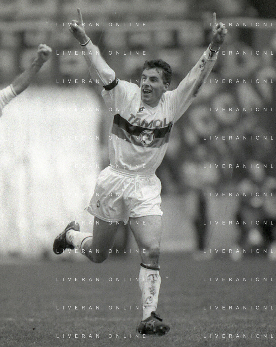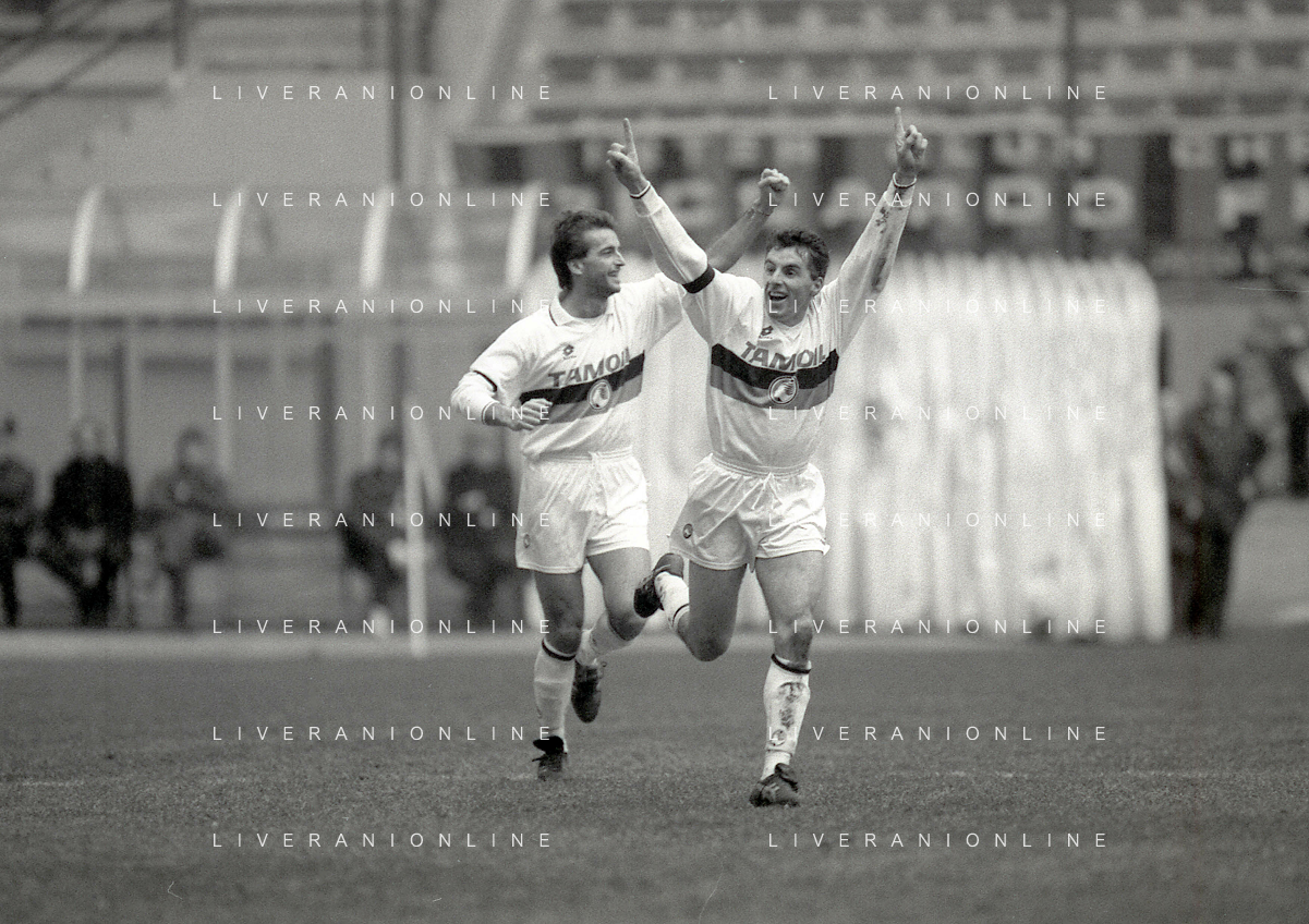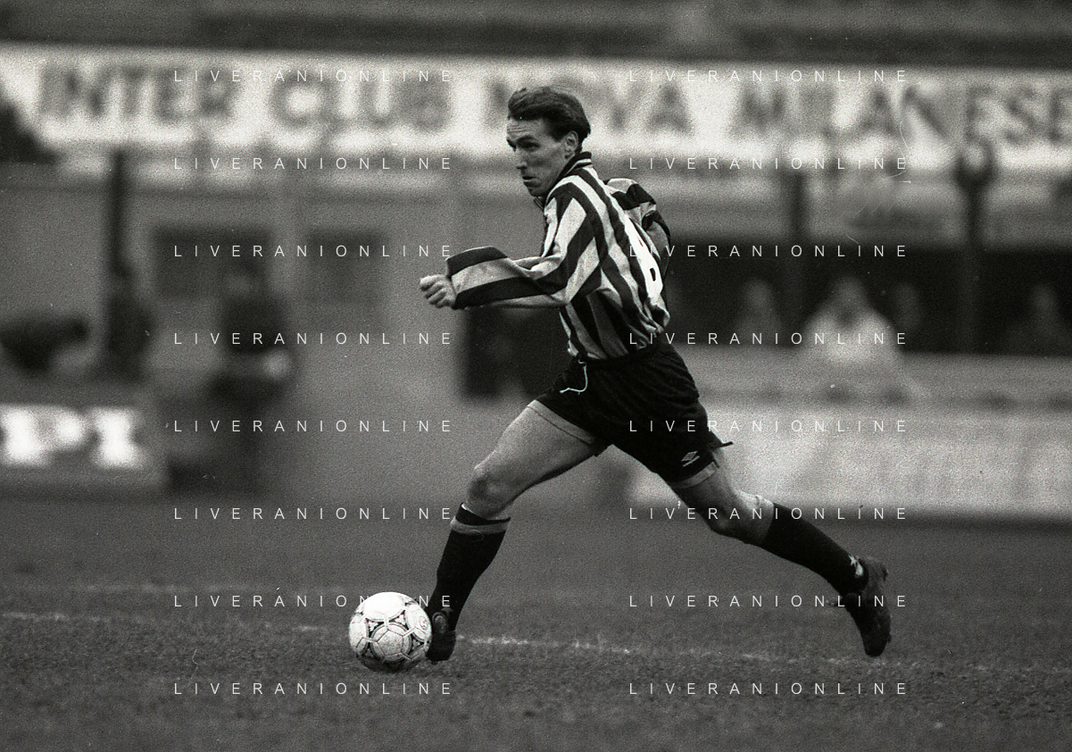 NEG-02-01-1994 MILANO CAMPIONATO DI CALCIO SERIE A INTER-ATALANTA 1-2 NELLA FOTO GIUSEPPE BERGOMI-ANTONIO MANICONE E SERGIO BATTISTINI AG ALDO LIVERANI SAS