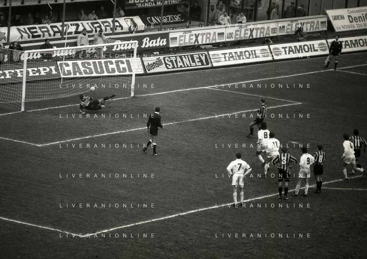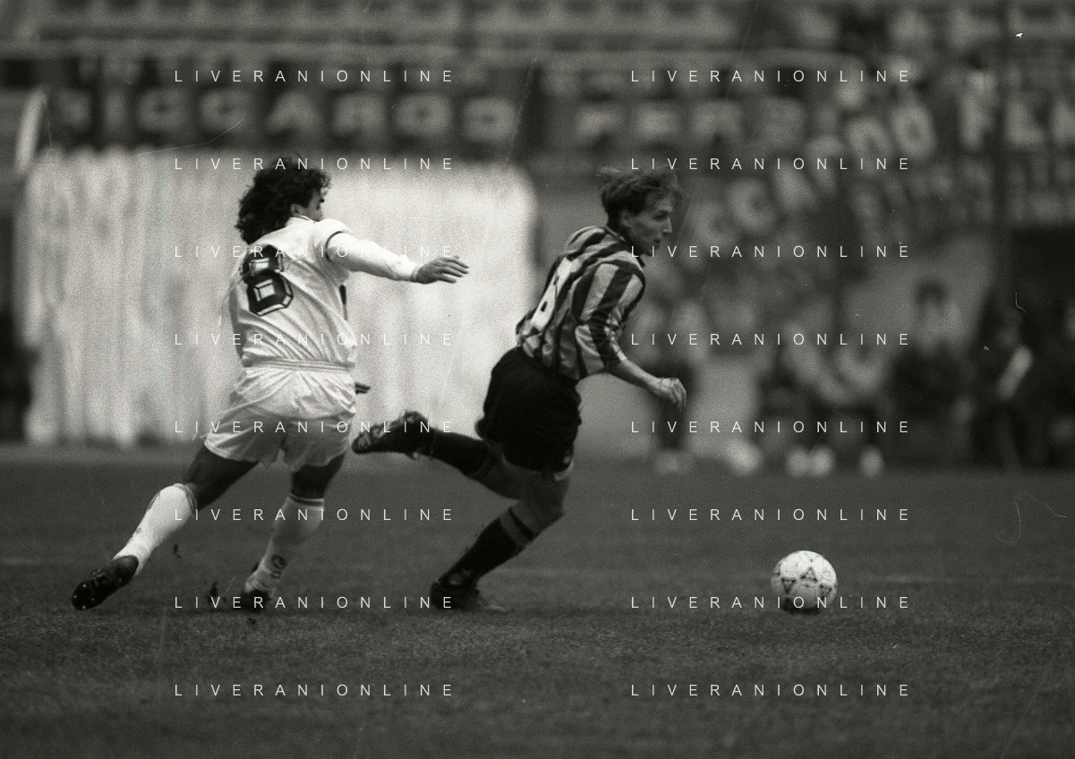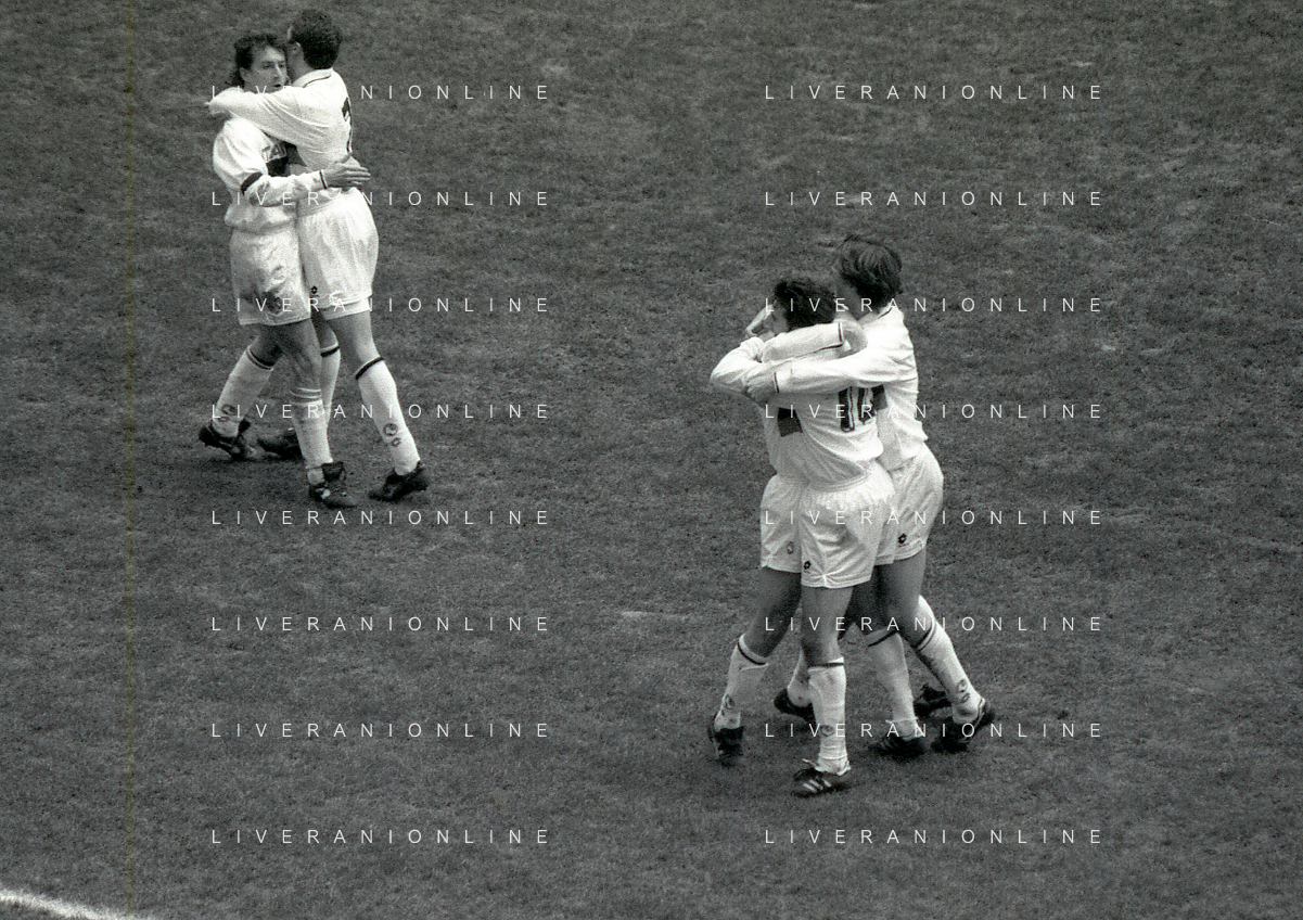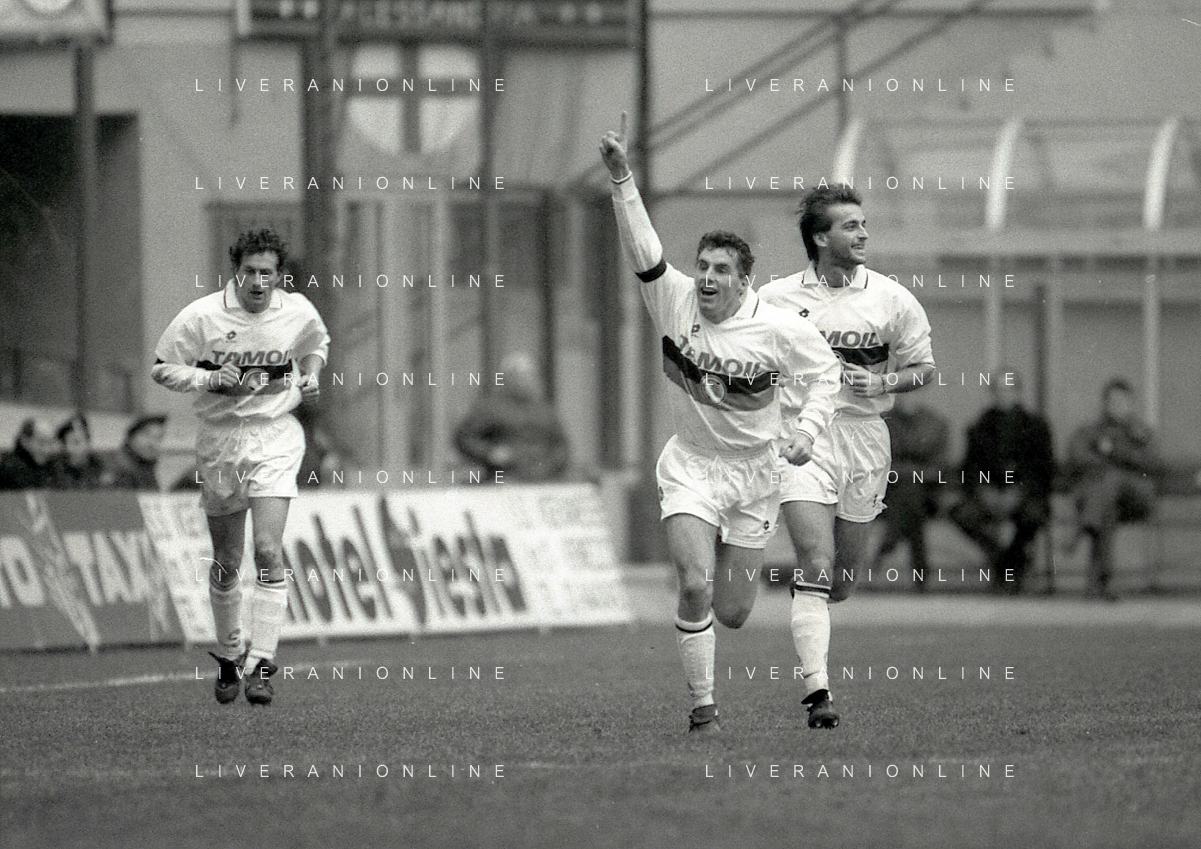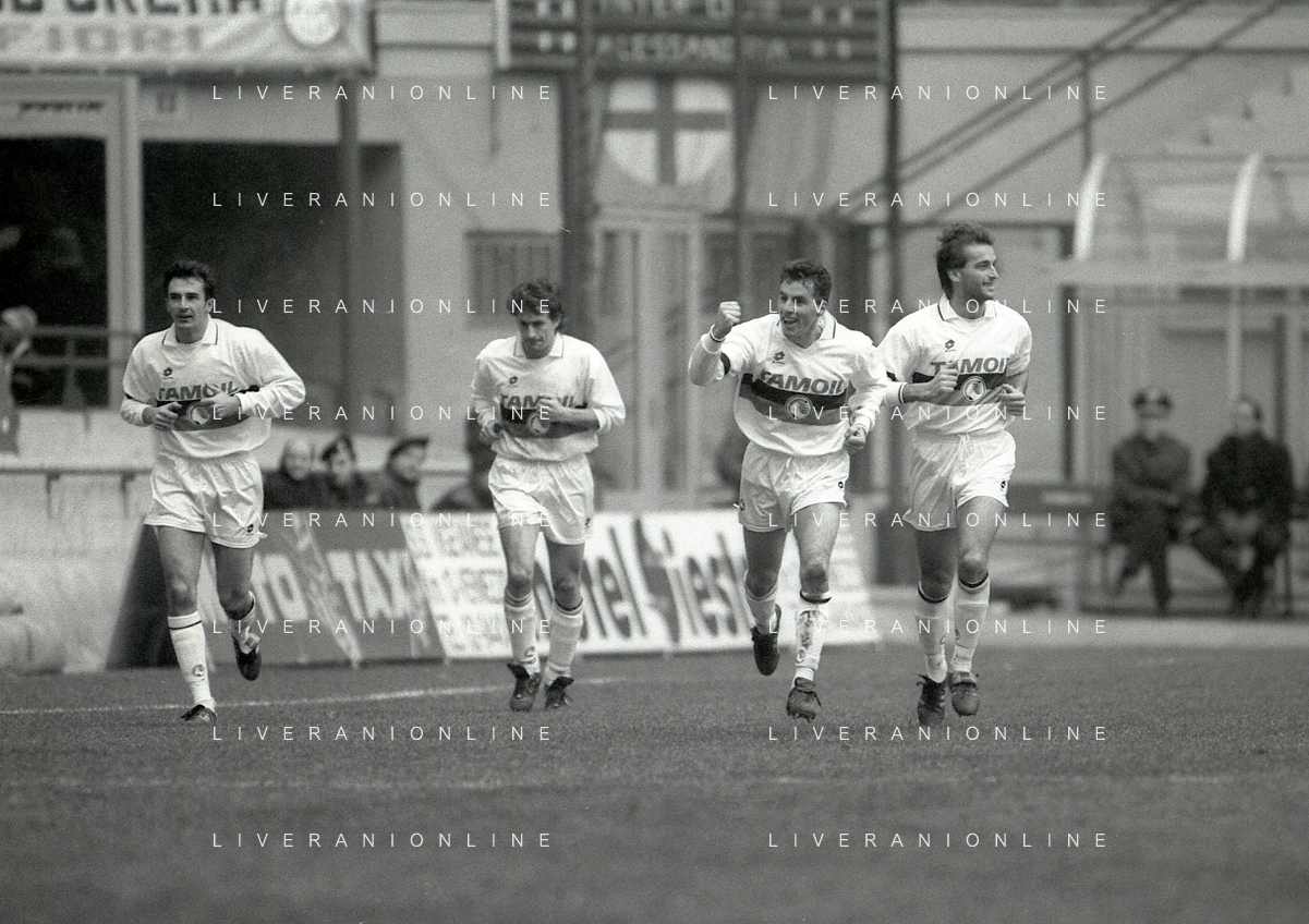NEG-02-01-1994 MILANO CAMPIONATO DI CALCIO SERIE A INTER-ATALANTA 1-2 NELLA FOTO GIUSEPPE BERGOMI-ANTONIO MANICONE E SERGIO BATTISTINI AG ALDO LIVERANI SAS