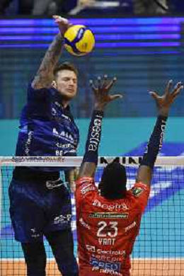 TVRG Monza vs Civitanova nella foto Luciano De Cecco (Civitanova) e Arthur Szwarc (Vero Volley Monza) Monza 24-03-2024 OpiquadArena Mint Vero Volley Monza vs Cucine Lube Civitanova SuperLega Credem Banca - gara 4 quarti di finale playoff scudetto foto Roberto Garavaglia/Agenzia Aldo Liverani sas/ AGENZIA ALDO LIVERANI SAS