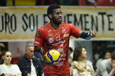 TVRG Monza vs Civitanova nella foto Barthelemy Chinenyeze (Civitanova) Monza 24-03-2024 OpiquadArena Mint Vero Volley Monza vs Cucine Lube Civitanova SuperLega Credem Banca - gara 4 quarti di finale playoff scudetto foto Roberto Garavaglia/Agenzia Aldo Liverani sas/AGENZIA ALDO LIVERANI SAS