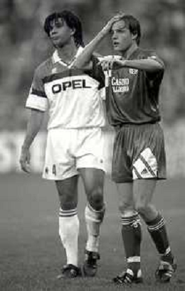 NEG-28-09-1994 MILANO CHAMPIONS LEAGUE MILAN SALISBURGO 3-0 NELLA FOTO DANIELE MASSARO E VINCENZO PINCOLINI AG ALDO LIVERANI SAS