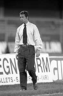 Neg- RETROSPETTIVA GIUSEPPE DOSSENA CALCIATORE NELLA FOTO GIUSEPPE DOSSENA TEAM MANAGER DELLA SAMPDORIA CALCIO NELL'ANNO 1995-1996 AG ALDO LIVERANI SAS