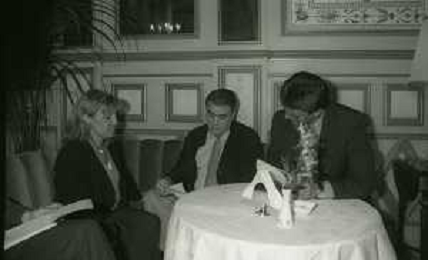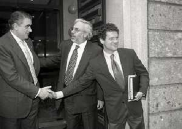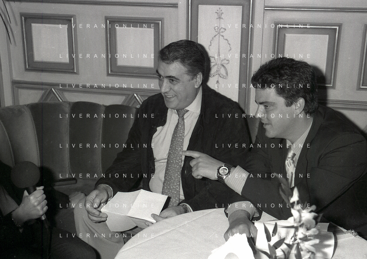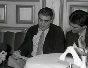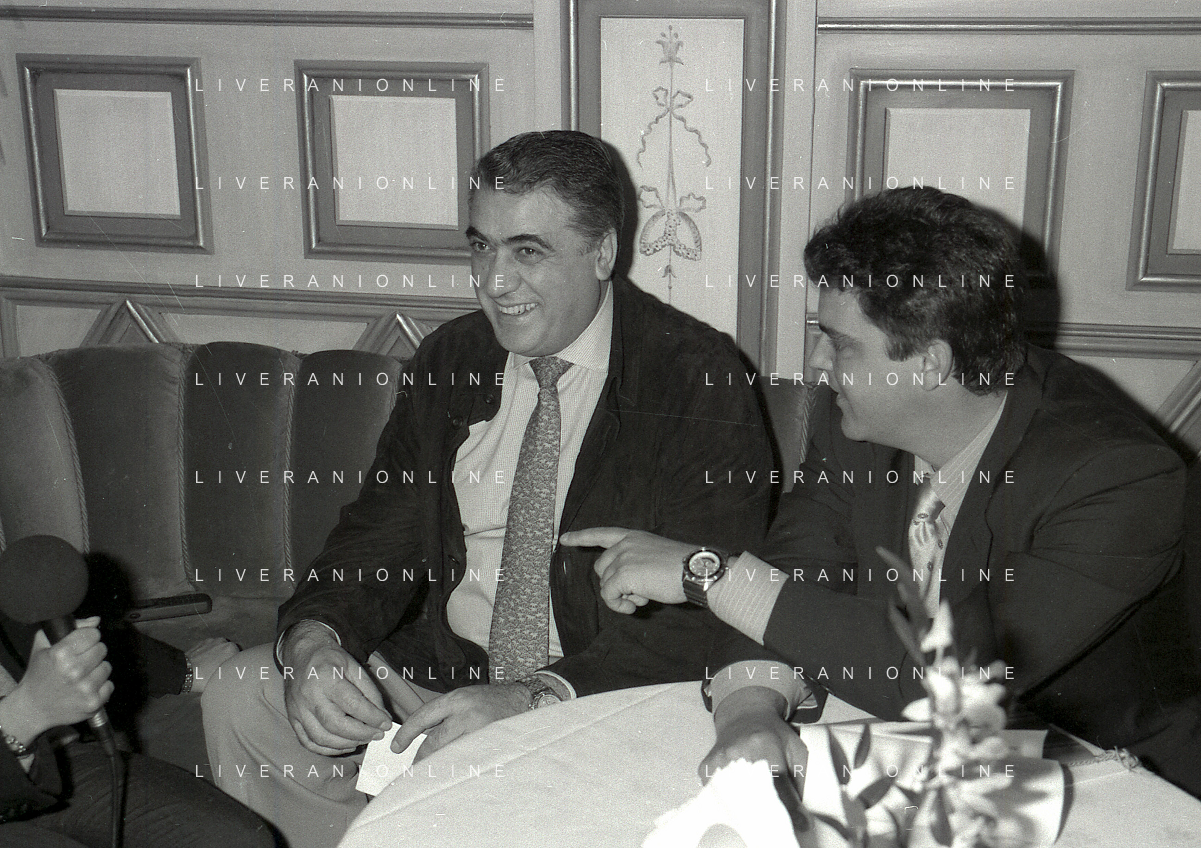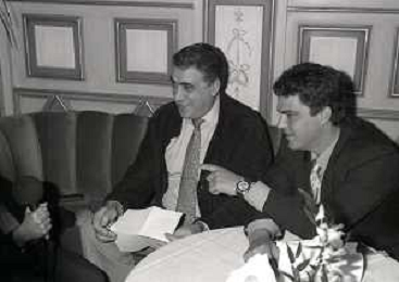 NEG-RETROSPETTIVA LORENZO SAINZ PRESIDENTE REAL MADRD CALCIO NELLA FOTO LORENZO SAINZ INCONTRA A MILANO FABIO CAPELLO NELL'ANNO 1996 AG ALDO LIVERANI SAS