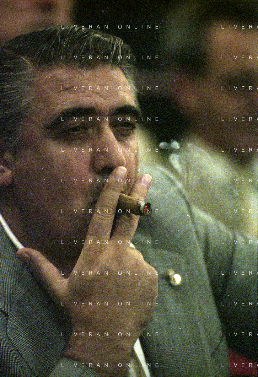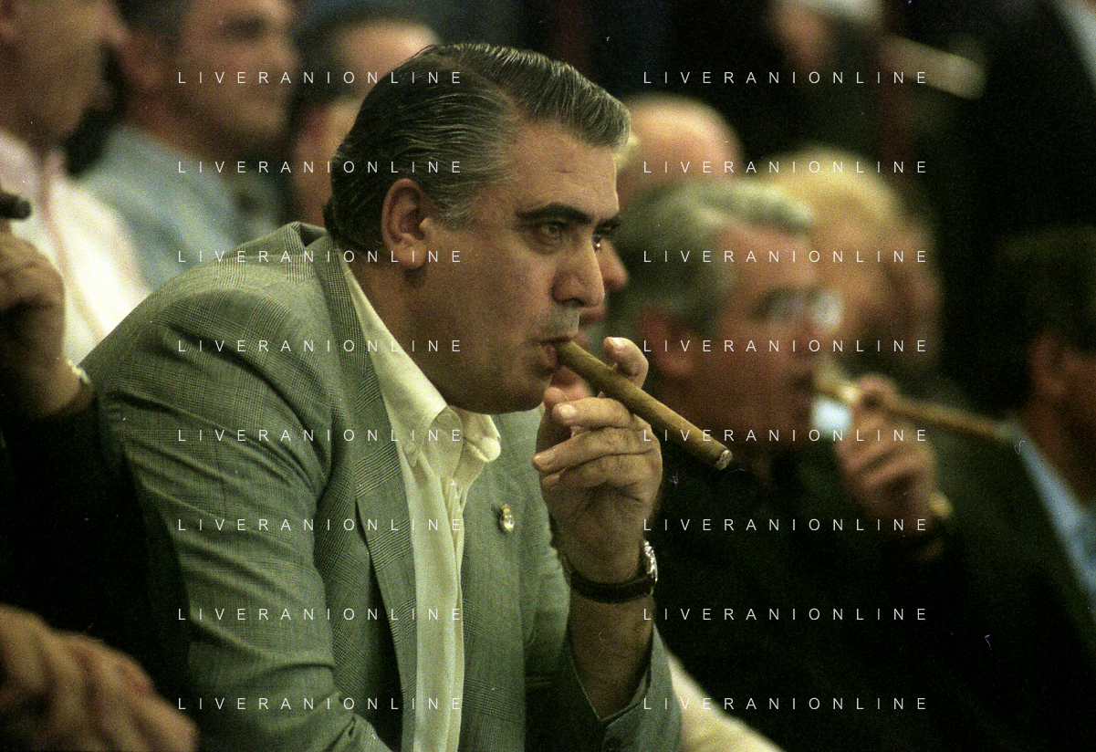 NEG-RETROSPETTIVA LORENZO SAINZ PRESIDENTE REAL MADRD CALCIO NELLA FOTO LORENZO SAINZ ALLO STADIO SAN SIRO DI MILANO NELL'ANNO 1999-200 AG ALDO LIVERANI SAS