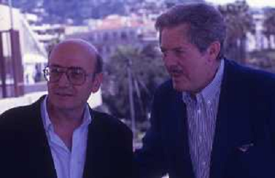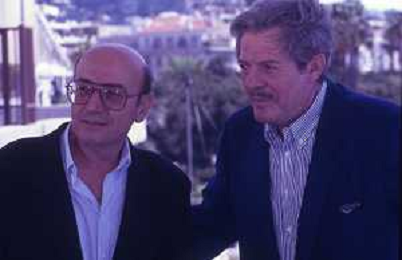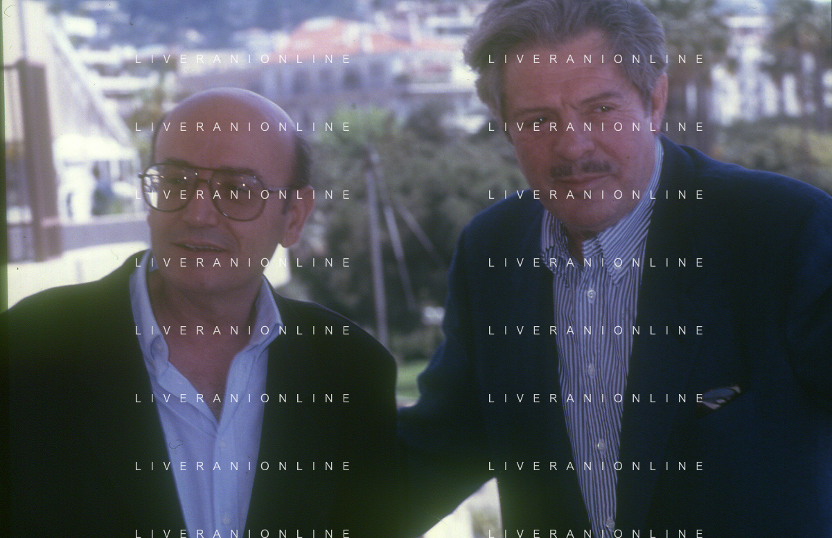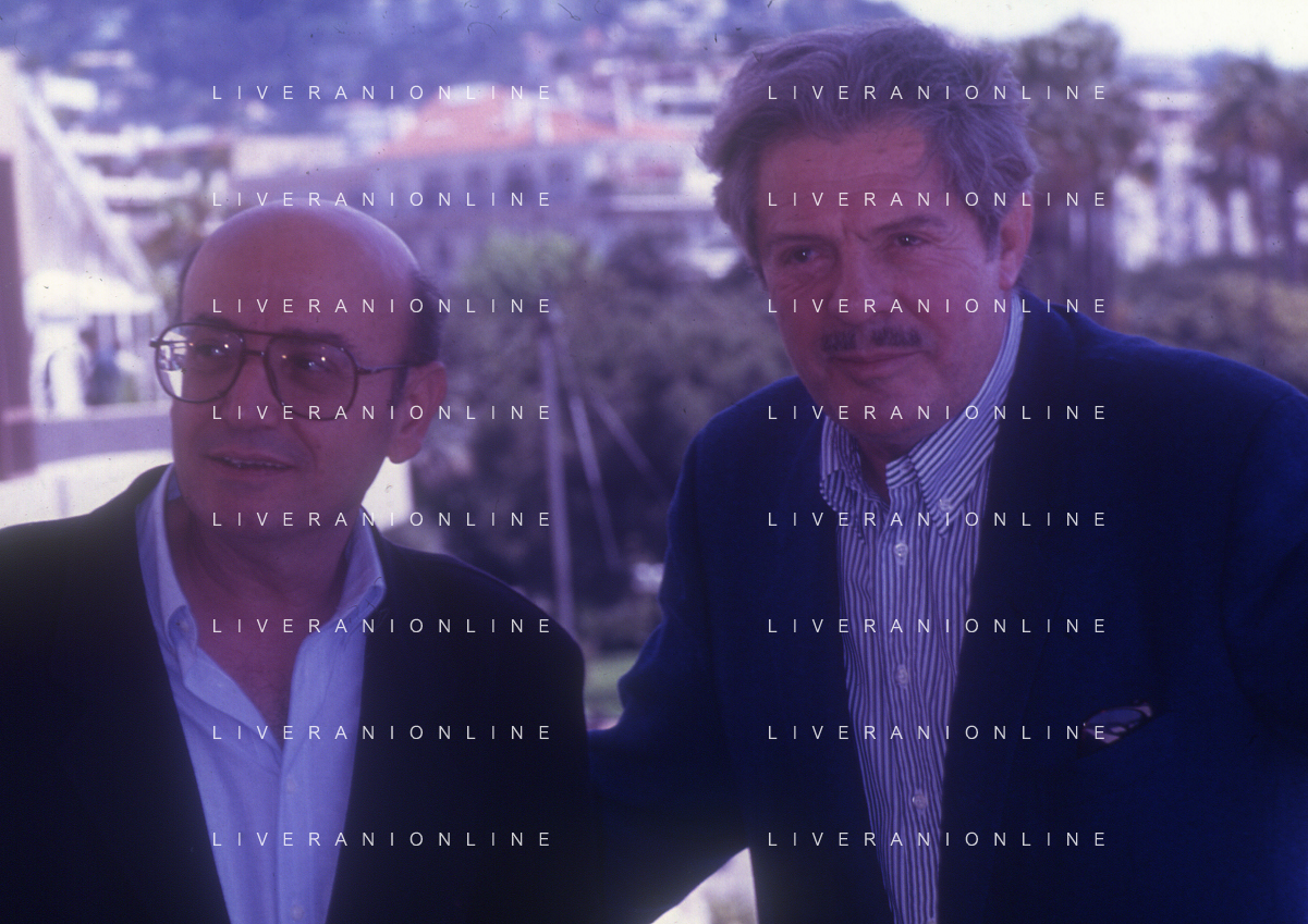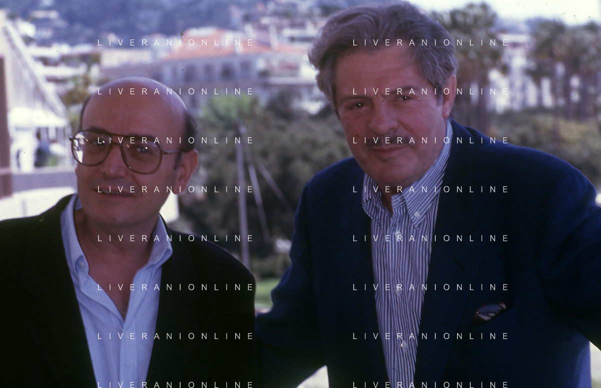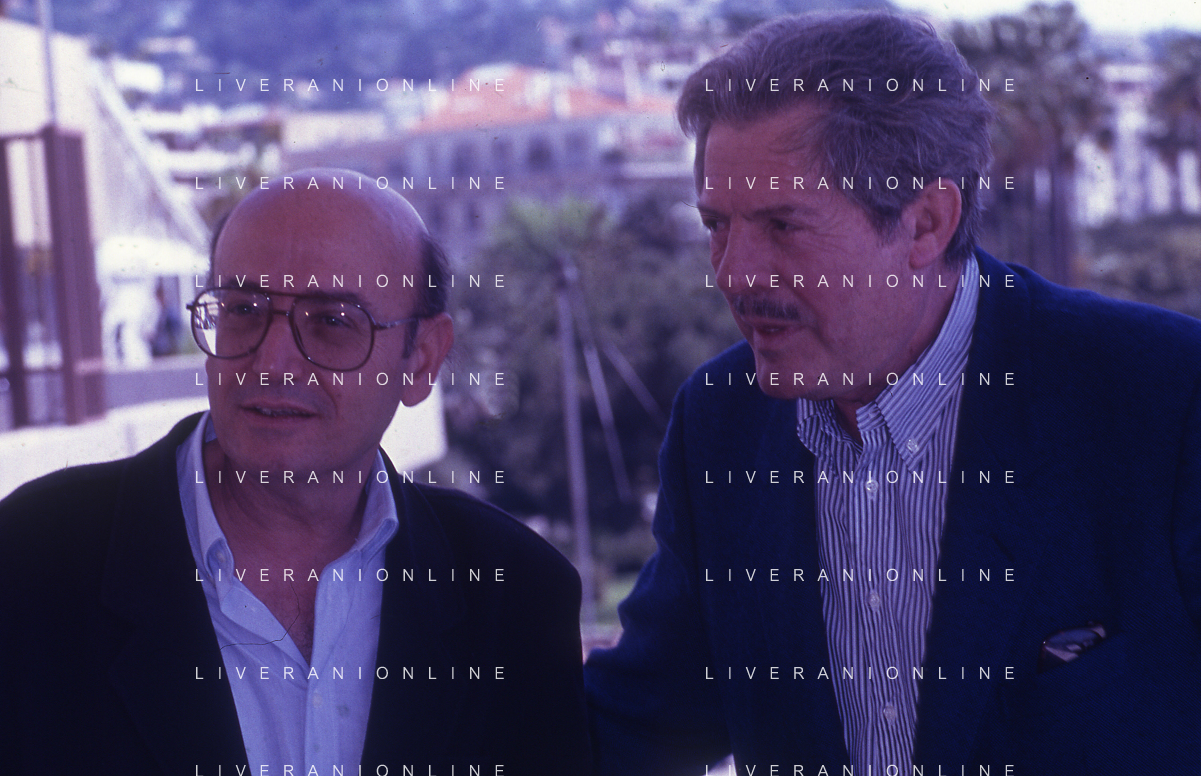 DIAP- RETROSPETTIVA THEO ANGELOPOULOS REGISTA -SCENEGGIATORE E PRODUTTORE CINEMATOGRAFICO NELLA FOTO THEO ANGELOPOULOS CON MARCELLO MASTROIANNI NELL'ANNO 1991 A CANNES AG ALDO LIVERANI SAS
