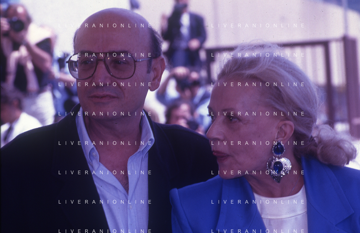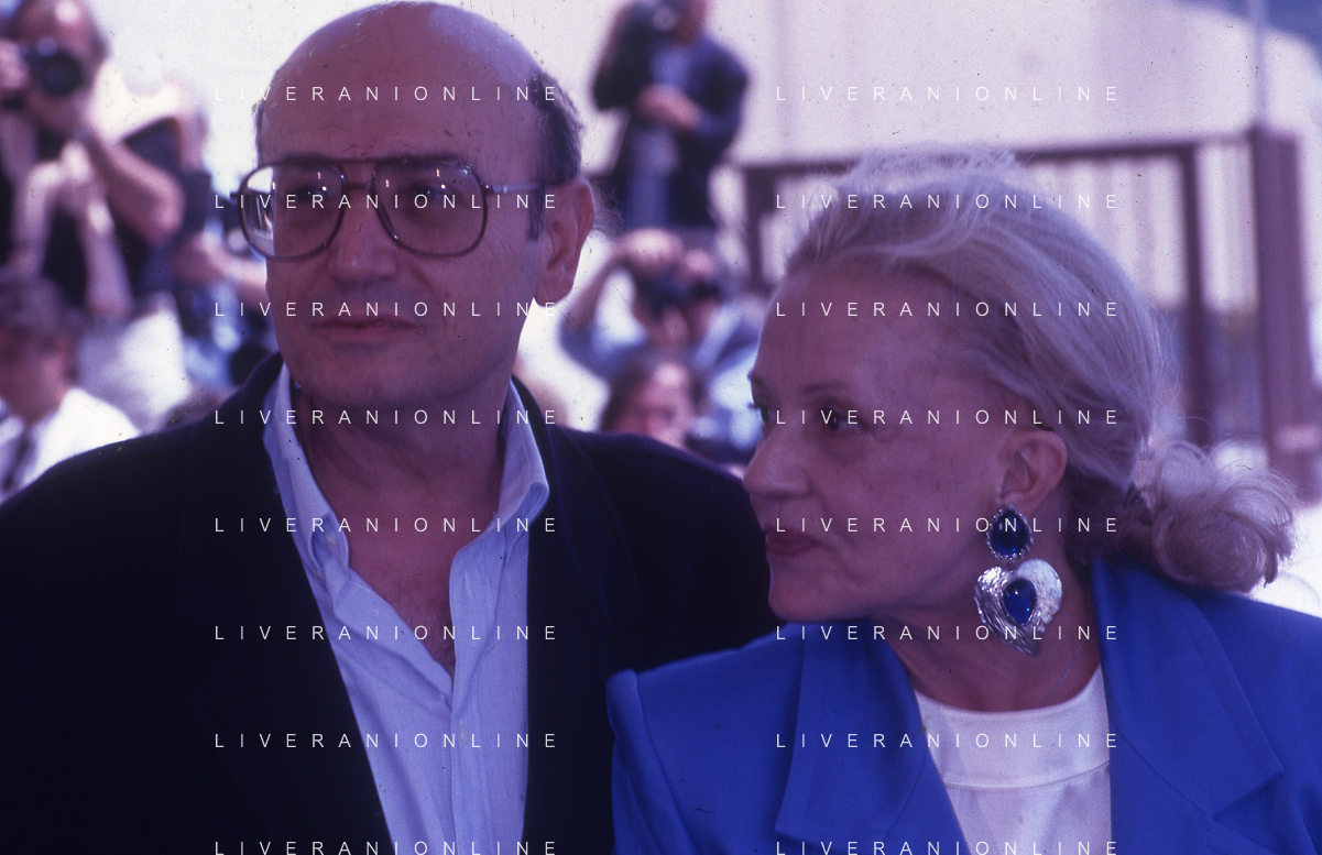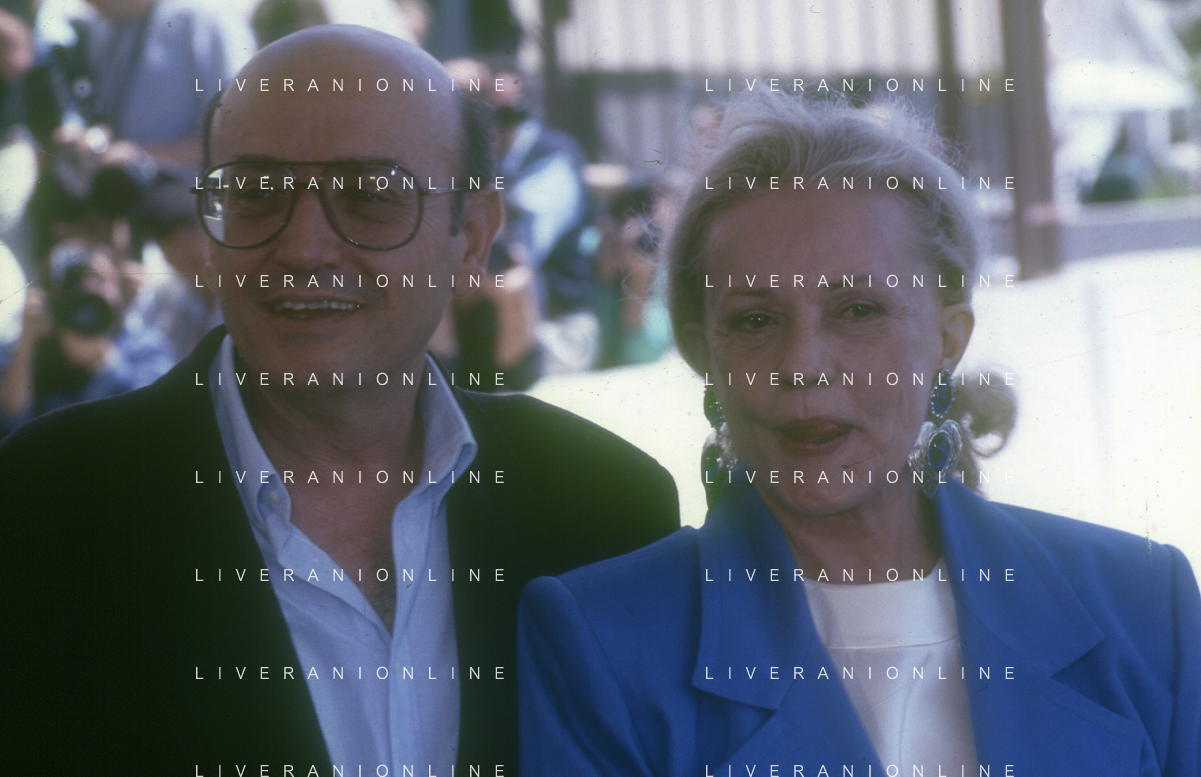 DIAP- RETROSPETTIVA THEO ANGELOPOULOS REGISTA -SCENEGGIATORE E PRODUTTORE CINEMATOGRAFICO NELLA FOTO THEO ANGELOPOULOS CON JEAN MOREAU NELL'ANNO 1991 A CANNES AG ALDO LIVERANI SAS