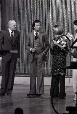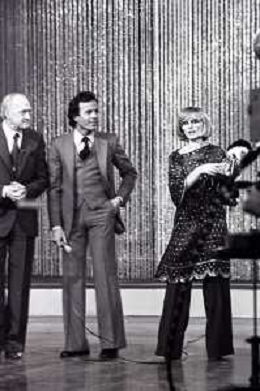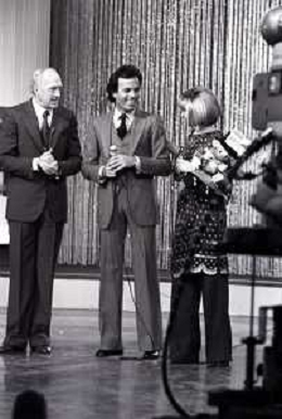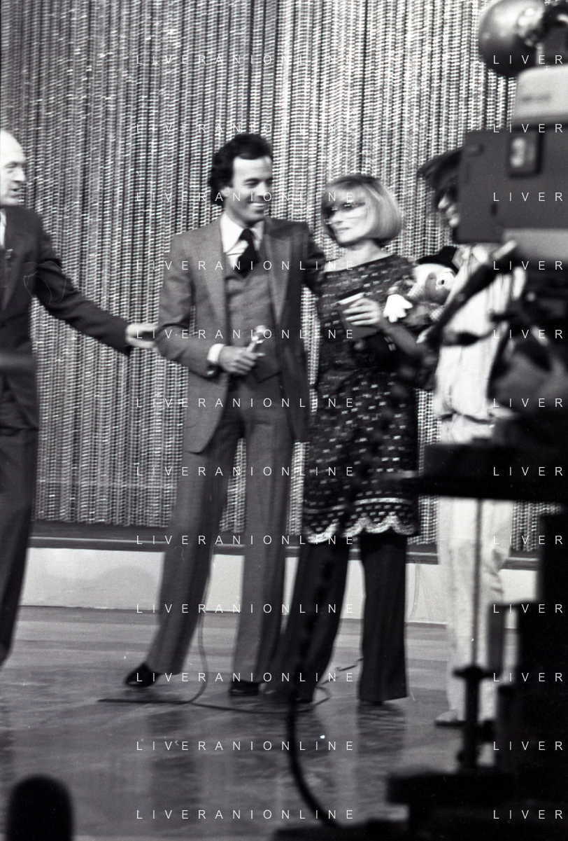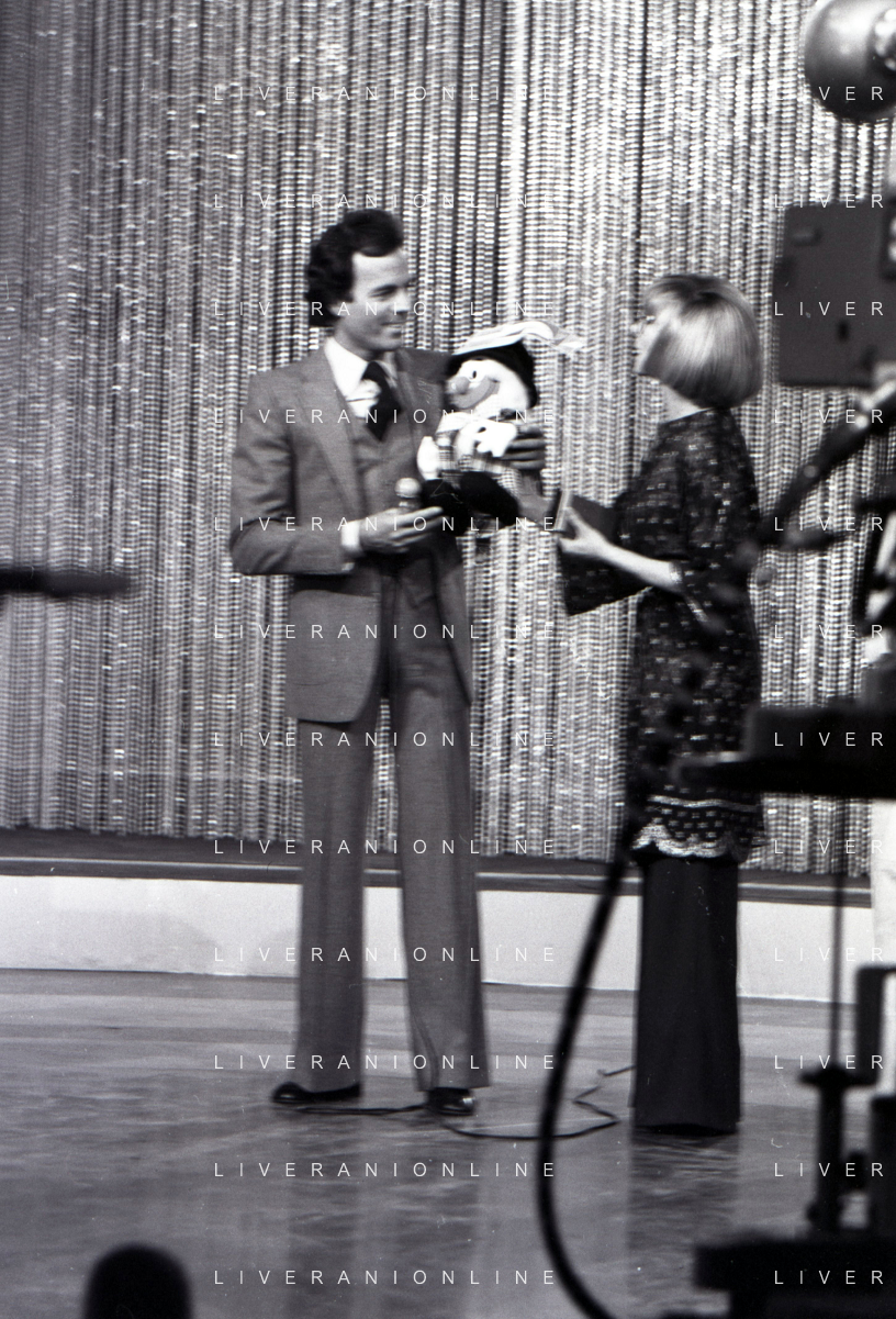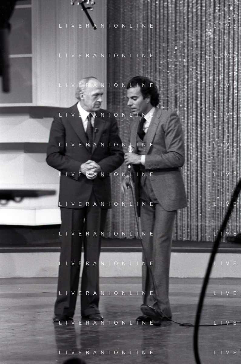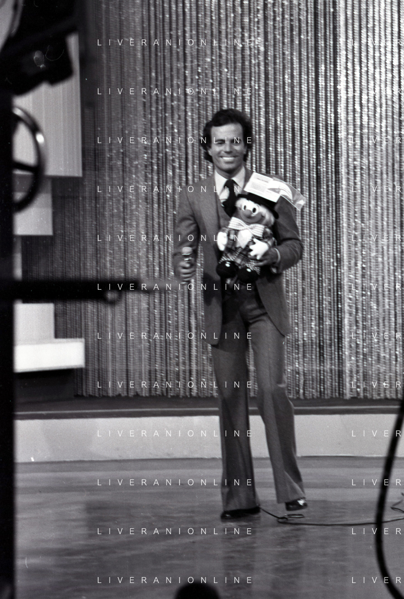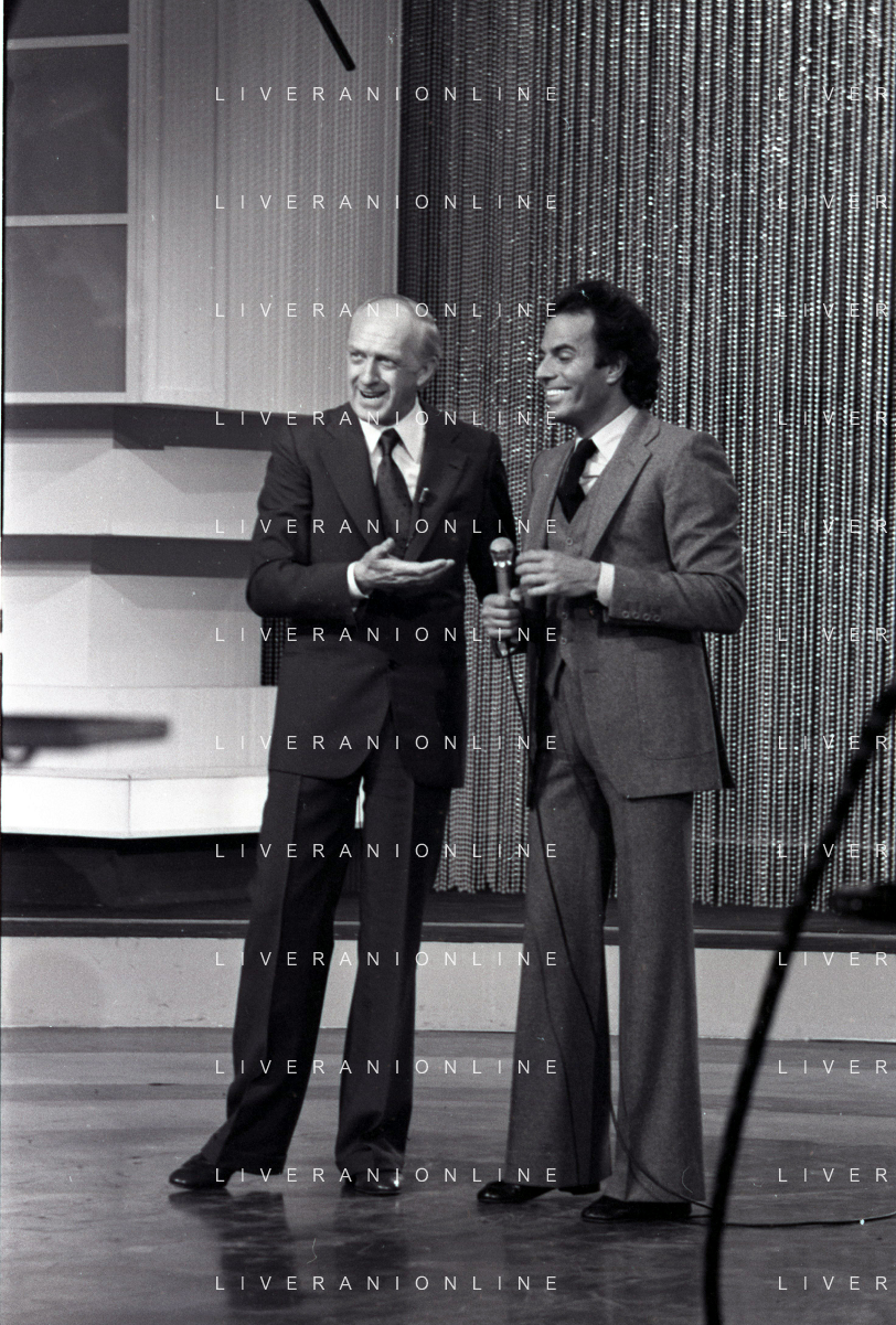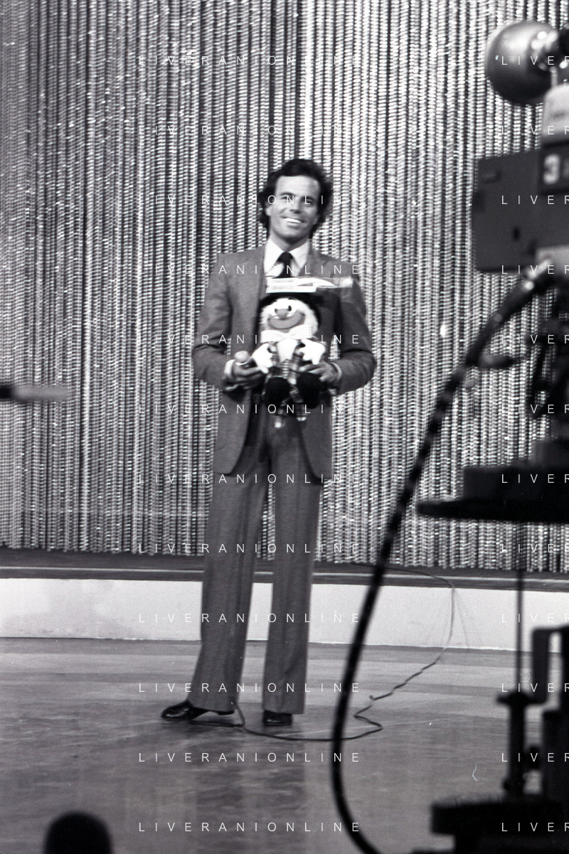 NEG-RETROSPETTIVA JULIO IGLESIAS CANTANTE NELLA FOTO JULIO IGLESIAS CON RAIMONDO VIANELLO E SANDRA MONDAINI NELLA TRASMISSIONE TELEVISIVA “IO E LA BEFANA“ NELL'ANNO 1976 AG ALDO LIVERANI SAS