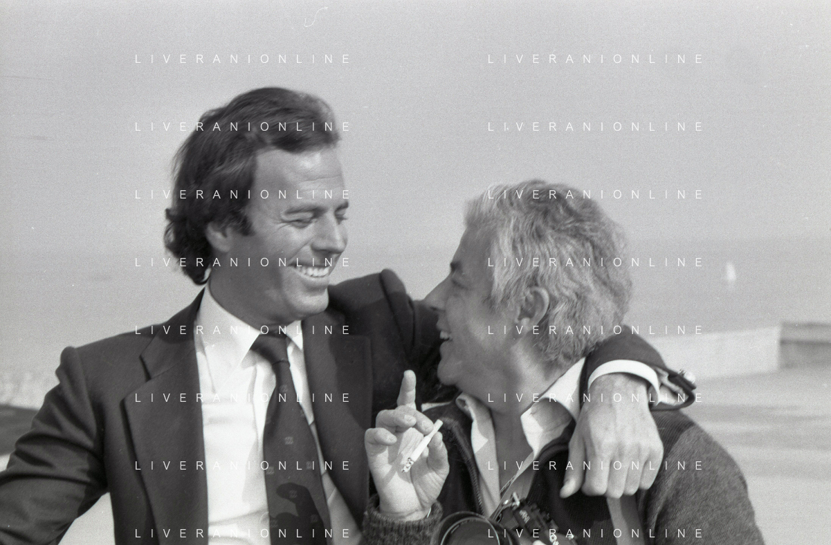 NEG-RETROSPETTIVA JULIO IGLESIAS CANTANTE NELLA FOTO JULIO IGLESIAS CON IL FOTOGRAFO VALFRIDO CHIARINI A VENEZIA NELL'ANNO 1979 PER LA GONDOLA D'ORO AG ALDO LIVERANI SAS