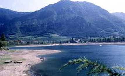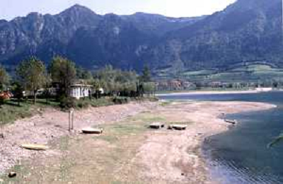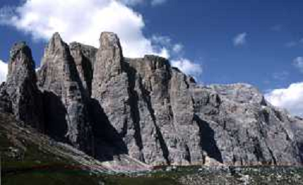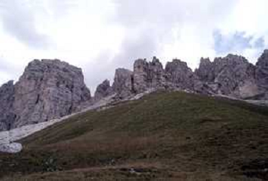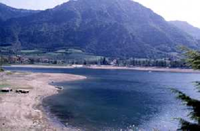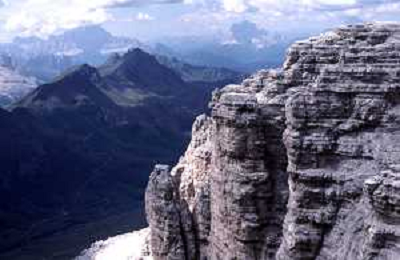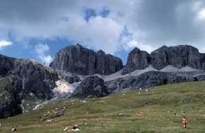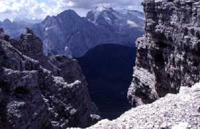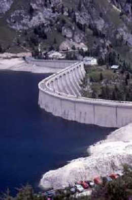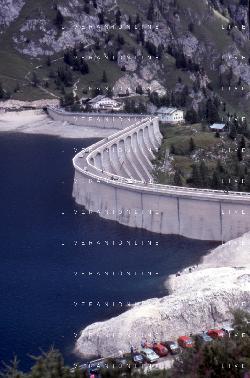 Veduta delle Montagne delle Dolomiti - Vista della diga del lago di Fedaia, ai piedi della Marmolada