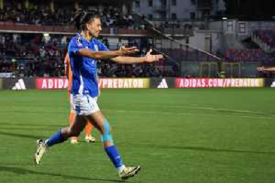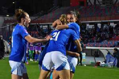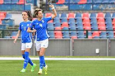 Foto Andrea Rosito 5 Aprile 2024 Cosenza, Italia calcio Italia vs Paesi - Women's European Qualifiers 2025 - Stadio San Vito-Gigi Marulla. Nella foto: Festa gol Valentina Giacinti foto andrea rosito-ag aldo liverani sas
