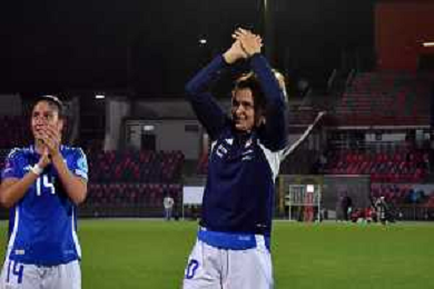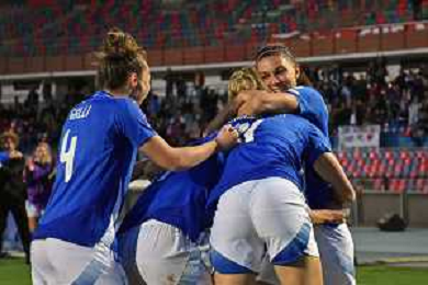 Foto Andrea Rosito 5 Aprile 2024 Cosenza, Italia calcio Italia vs Paesi - Women's European Qualifiers 2025 - Stadio San Vito-Gigi Marulla. Nella foto: Festa fine gara AG ALDO LIVERANI SAS