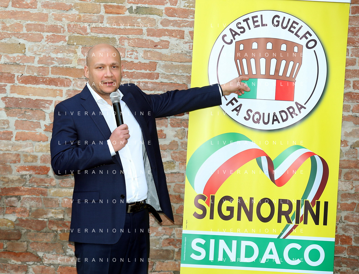 CASTEL GUELFO 06 04 2024 MARCO SIGNORINI CANDIDATO SINDACO LISTA CIVICA CASTEL GUELFO FA SQUADRA APPOGGIATO DA CENTRO DESTRA NELLA FOTO FOTO GIANNI SANNA-AG ALDO LIVERANI SAS