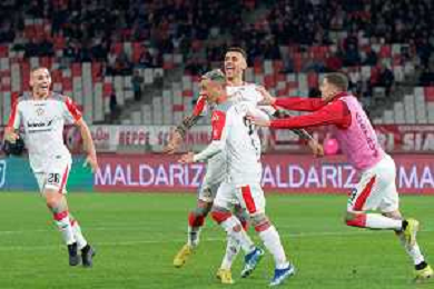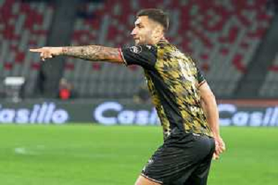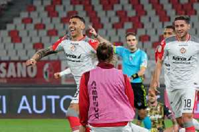 TVEM Cesar Falletti of US Cremonese celebrates the victory during the Italian Serie B match between SSC Bari vs US Cremonese on April 5, 2024 at the San Nicola stadium in Bari, Italy. Photo by Emmanuele Mastrodonato/agenzia Aldo Liverani sas /AGENZIA ALDO LIVERANI SAS