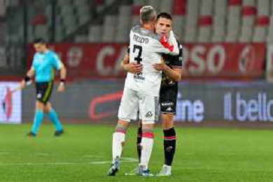 TVEM Cesar Falletti of US Cremonese and Valentin Antov of US Cremonese celebrates the victory during the Italian Serie B match between SSC Bari vs US Cremonese on April 5, 2024 at the San Nicola stadium in Bari, Italy. Photo by Emmanuele Mastrodonato/agenzia Aldo Liverani sas /AGENZIA ALDO LIVERANI SAS