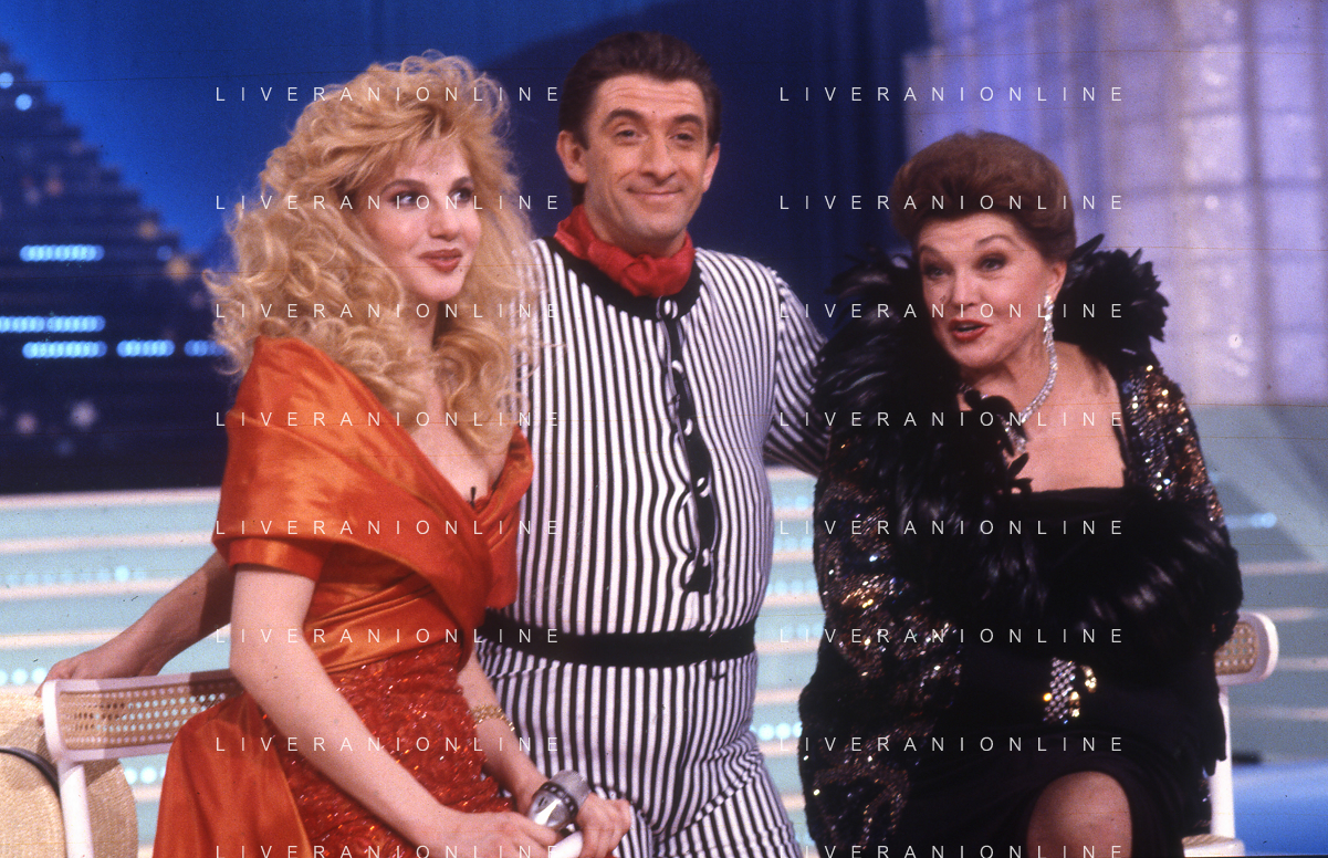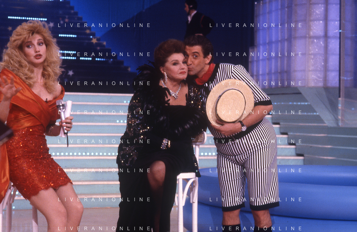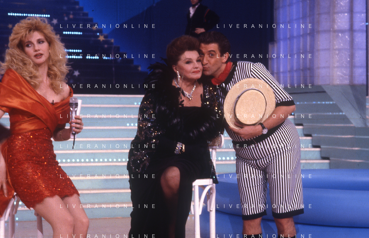 DIAP-RETROSPETTIVA ESTER WILLIAMS ATTRICE NELLA FOTO ESTER WILLIAMS OSPITE DELLA TRASMISSIONE TELEVISIVA “ODIENS“ CON LORELLA CUCCARINI E EZIO GREGGIO AG ALDO LIVERANI SAS