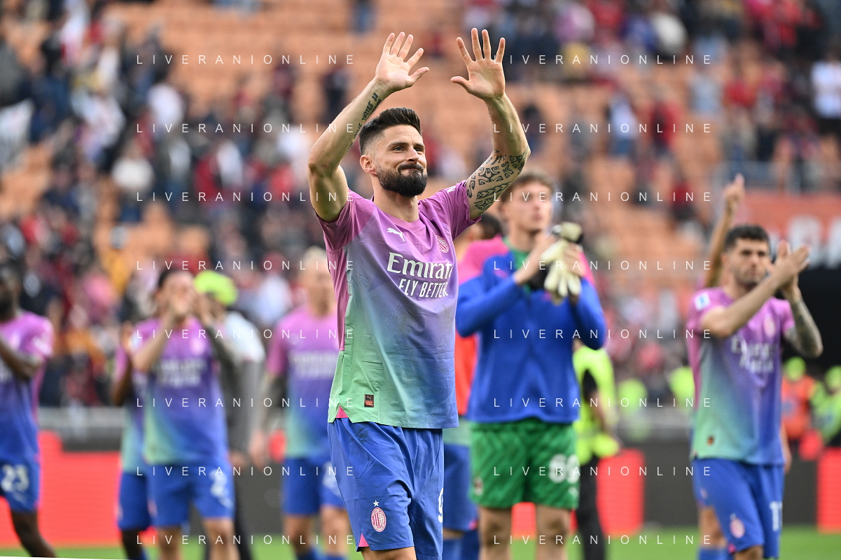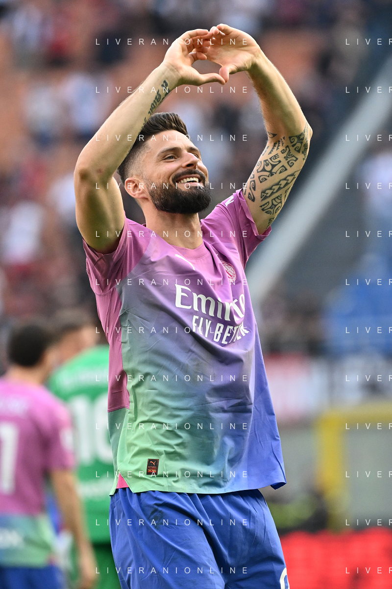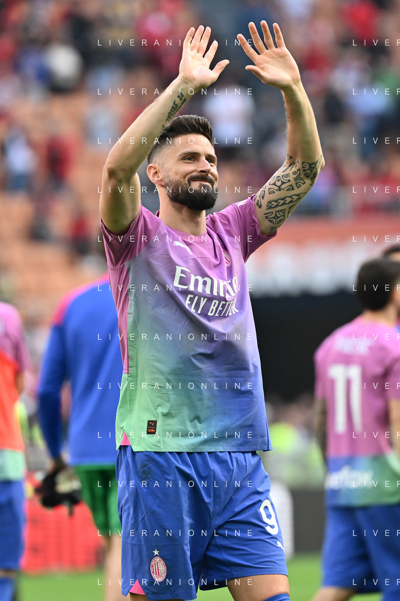 Milan vs Lecce nella foto Olivier Giroud (Milan) esultanza a fine partita Milano 06-04-2024 Stadio Giuseppe Meazza - San Siro Campionato Serie A TIM - 31a giornata foto Roberto Garavaglia/Agenzia Aldo Liverani sas/ AGENZIA ALDO LIVERANI SAS