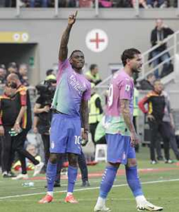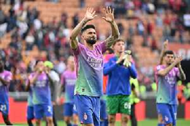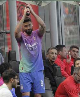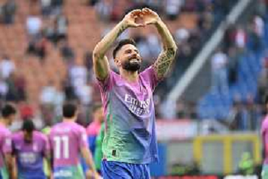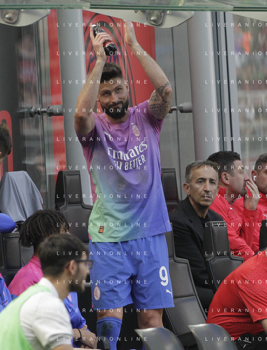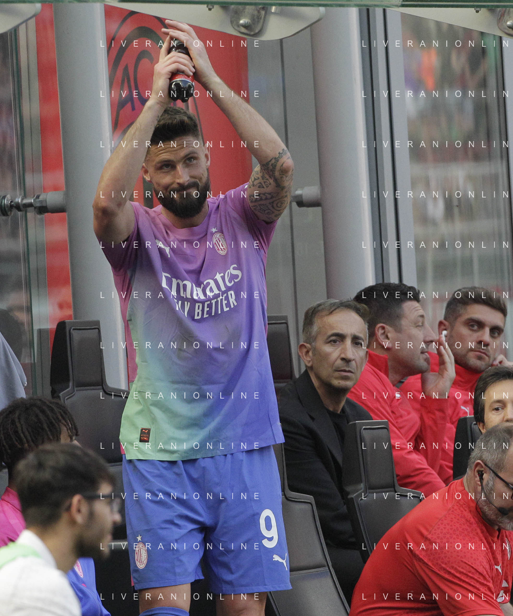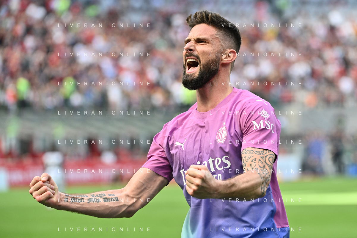 Milan vs Lecce nella foto Olivier Giroud (Milan) esultanza a fine partita Milano 06-04-2024 Stadio Giuseppe Meazza - San Siro Campionato Serie A TIM - 31a giornata foto Roberto Garavaglia/Agenzia Aldo Liverani sas/ AGENZIA ALDO LIVERANI SAS