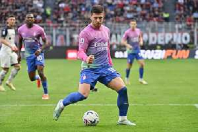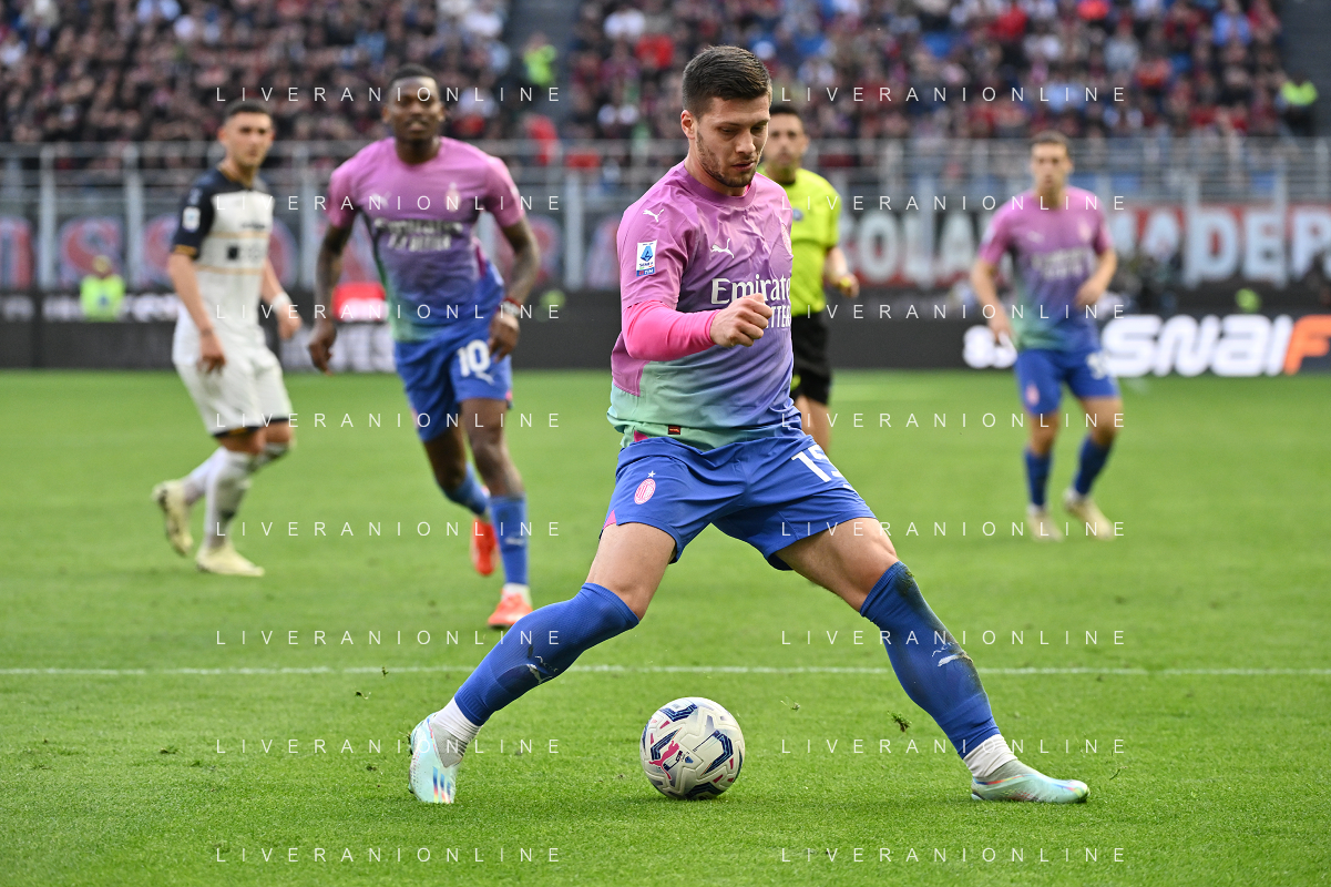 Milan vs Lecce nella foto Luka Jovic (Milan) Milano 06-04-2024 Stadio Giuseppe Meazza - San Siro Campionato Serie A TIM - 31a giornata foto Roberto Garavaglia/Agenzia Aldo Liverani sas/ AGENZIA ALDO LIVERANI SAS