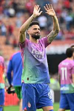 Milan vs Lecce nella foto Olivier Giroud (Milan) esultanza a fine partita Milano 06-04-2024 Stadio Giuseppe Meazza - San Siro Campionato Serie A TIM - 31a giornata foto Roberto Garavaglia/Agenzia Aldo Liverani sas /AGENZIA ALDO LIVERANI SAS