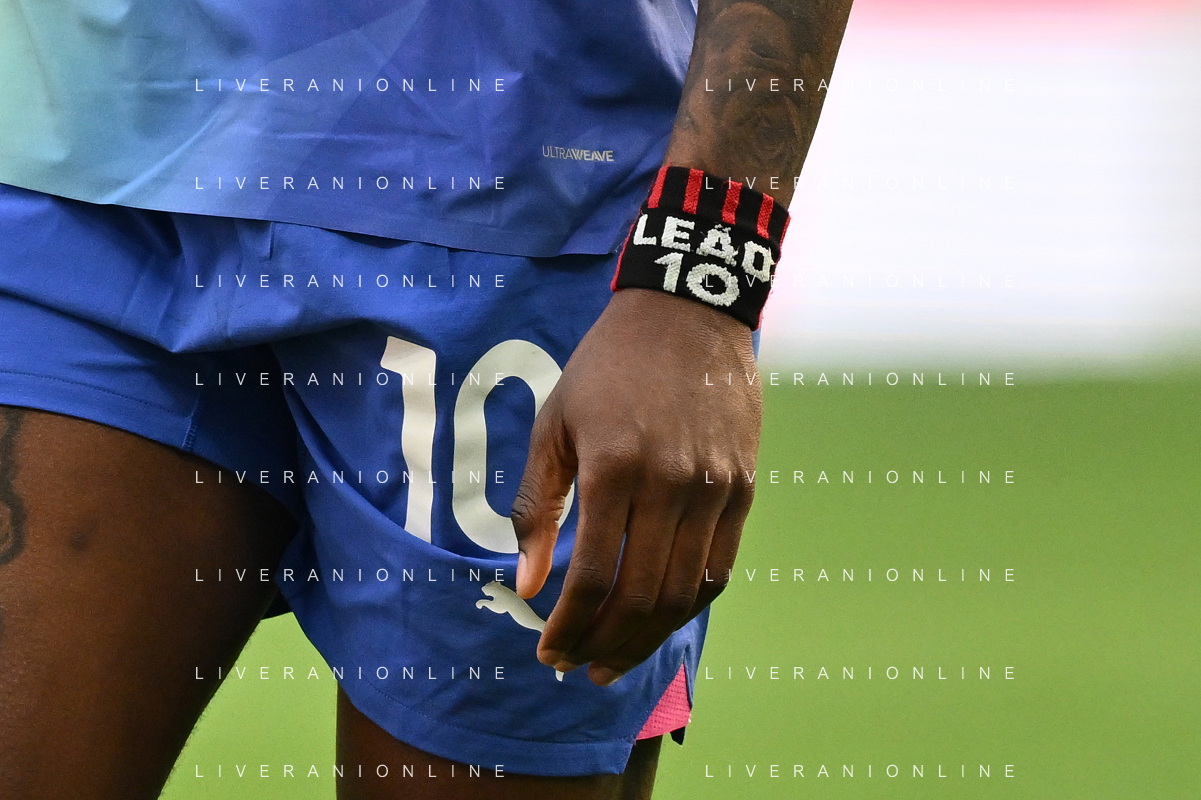 Milan vs Lecce nella foto il bracciale in stoffa indossato da Rafael Leao (Milan) durante la gara Milano 06-04-2024 Stadio Giuseppe Meazza - San Siro Campionato Serie A TIM - 31a giornata foto Roberto Garavaglia/Agenzia Aldo Liverani sas/ AGENZIA ALDO LIVERANI SAS