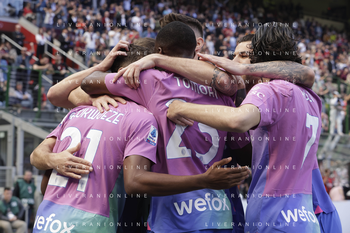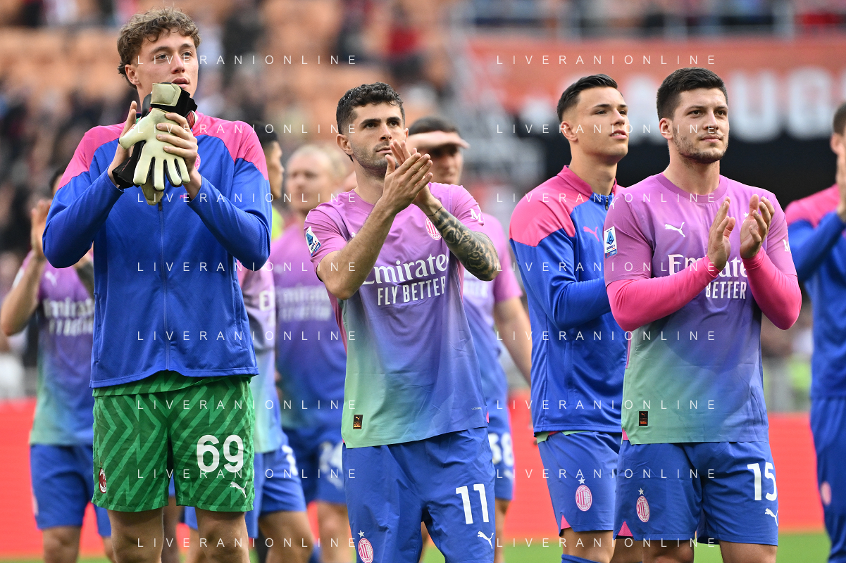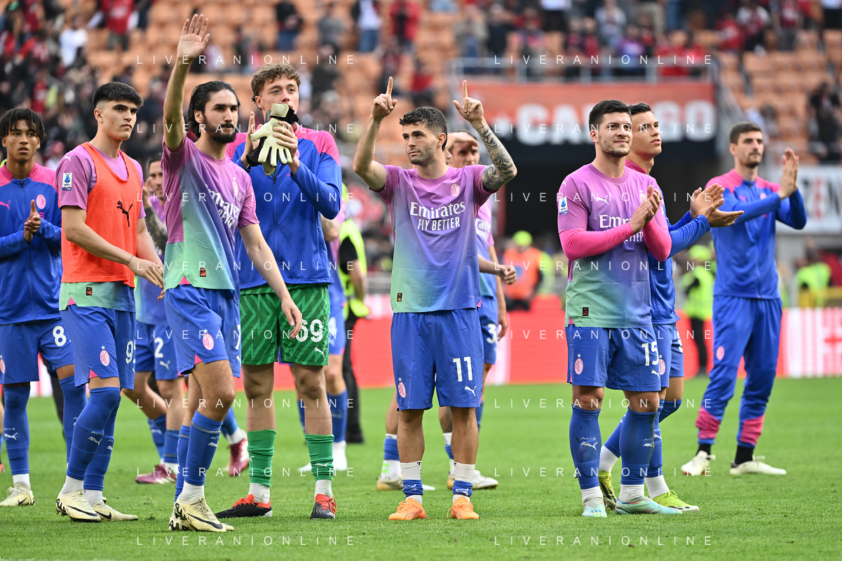 Milan vs Lecce nella foto esultanza finale Milan Milano 06-04-2024 Stadio Giuseppe Meazza - San Siro Campionato Serie A TIM - 31a giornata foto Roberto Garavaglia/Agenzia Aldo Liverani sas/ AGENZIA ALDO LIVERANI SAS