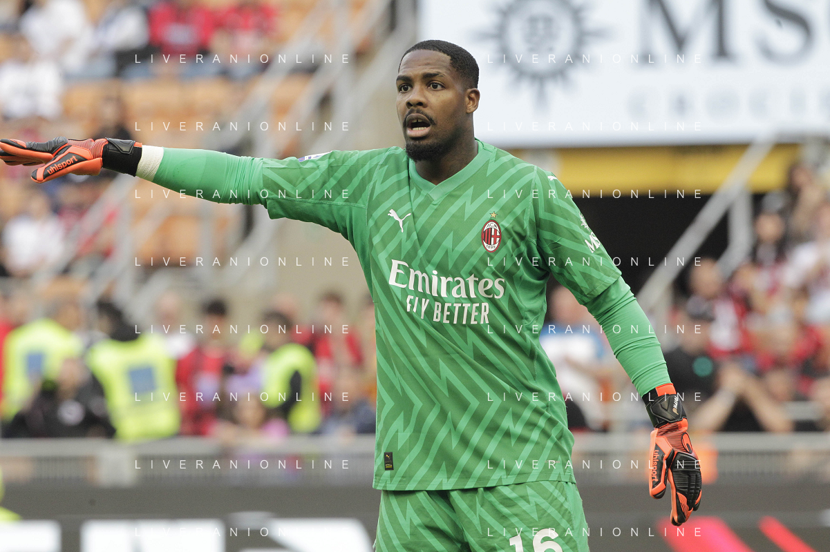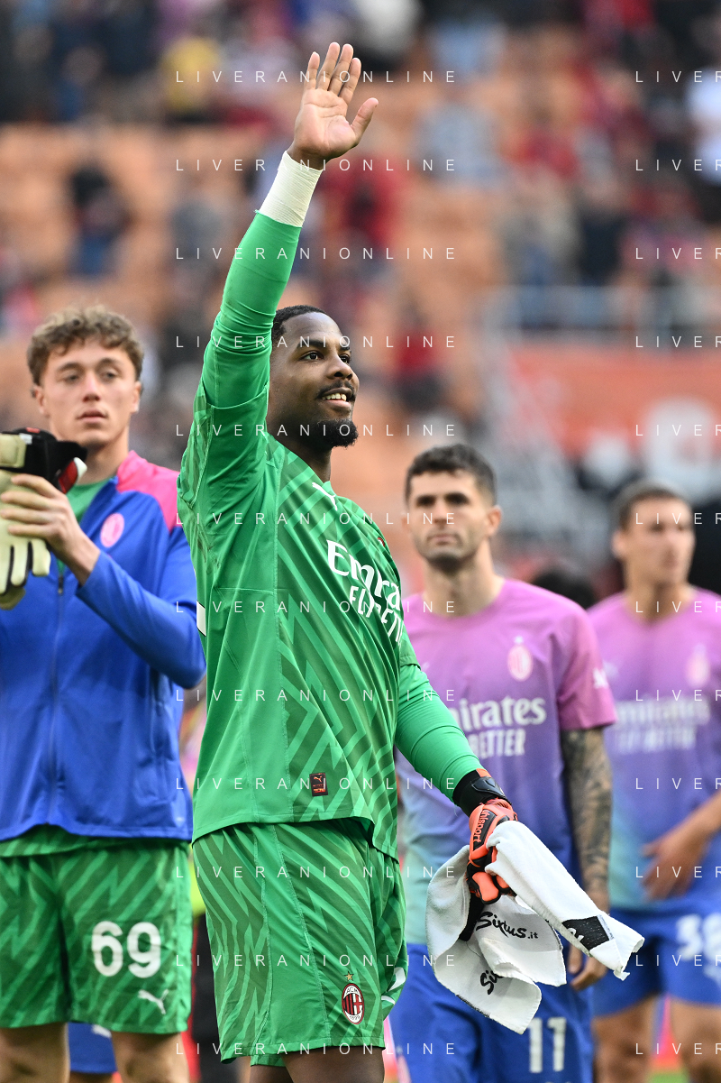 Milan vs Lecce nella foto Mike Maignan (Milan) Milano 06-04-2024 Stadio Giuseppe Meazza - San Siro Campionato Serie A TIM - 31a giornata foto Roberto Garavaglia/Agenzia Aldo Liverani sas /AGENZIA ALDO LIVERANI SAS