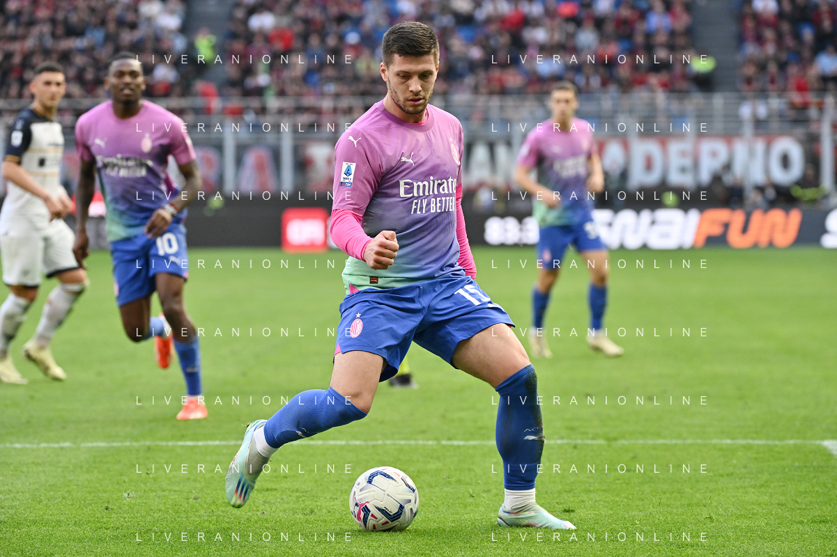 Milan vs Lecce nella foto Luka Jovic (Milan) Milano 06-04-2024 Stadio Giuseppe Meazza - San Siro Campionato Serie A TIM - 31a giornata foto Roberto Garavaglia/Agenzia Aldo Liverani sas /AGENZIA ALDO LIVERANI SAS