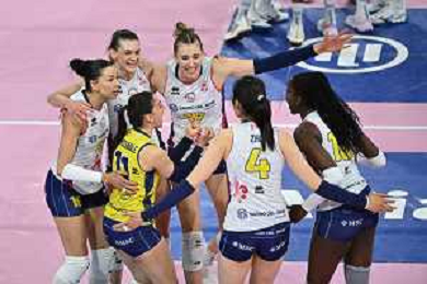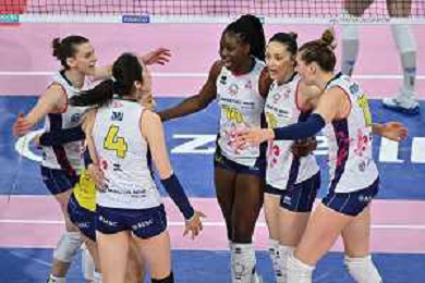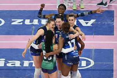 TVRG Milano vs Scandicci nella foto esultanza Pallavolo Scandicci dopo un punto Milano 10-04-2024 Allianz Cloud - PalaLido Allianz Vero Volley Milano vs Pallavolo Scandicci Savino Del Bene Playoff Serie A1 Tigotà - gara 2 semifinali foto Roberto Garavaglia/Agenzia Aldo Liverani sas/AGENZIA ALDO LIVERANI SAS