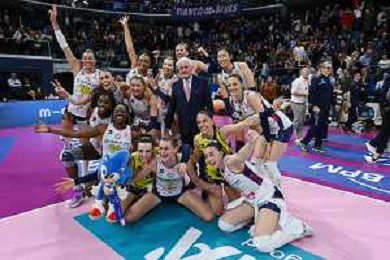 TVRG Milano vs Scandicci nella foto esultanza finale Pallavolo Scandicci Milano 10-04-2024 Allianz Cloud - PalaLido Allianz Vero Volley Milano vs Pallavolo Scandicci Savino Del Bene Playoff Serie A1 Tigotà - gara 2 semifinali foto Roberto Garavaglia/Agenzia Aldo Liverani sas/AGENZIA ALDO LIVERANI SAS