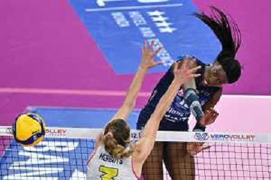 TVRG Milano vs Scandicci nella foto Linda Nwakalor (Pallavolo Scandicci) Milano 10-04-2024 Allianz Cloud - PalaLido Allianz Vero Volley Milano vs Pallavolo Scandicci Savino Del Bene Playoff Serie A1 Tigotà - gara 2 semifinali foto Roberto Garavaglia/Agenzia Aldo Liverani sas/AGENZIA ALDO LIVERANI SAS