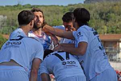 Foto Andrea Rosito 13 Aprile 2024 Cosenza, Italia - sport, calcio - Cosenza vs Palermo - Campionato di calcio Serie BKT 2023/2024 - Stadio-San Vito-Gigi Marulla - Nella foto: Festa gol Cosenza Gennaro Tutino e Valerio Crespi