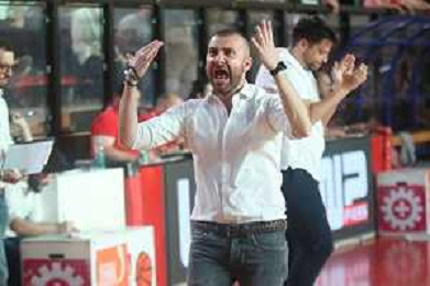 IMOLA 14 04 2024 ANDREA COSTA BASKET-BLACKS FAENZA SERIE B NELLA FOTO EMANUELE DI PAOLANTONIO ALLENATORE IMOLA