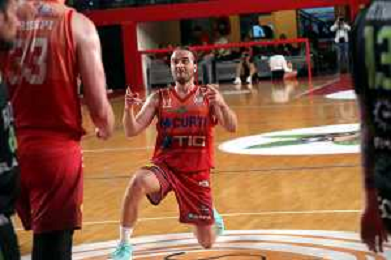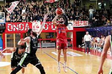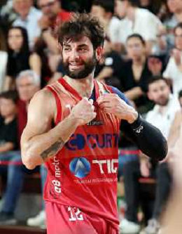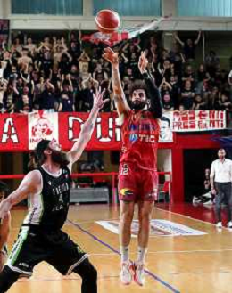 IMOLA 14 04 2024 ANDREA COSTA BASKET-BLACKS FAENZA SERIE B NELLA FOTO MITCHEL POLETTI DOPO IL SUO CANESTRO FAENZA ©SANNA / AGENZIA ALDO LIVERANI SAS