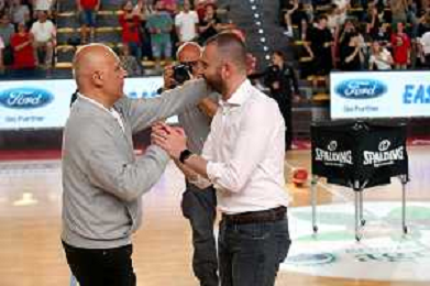 IMOLA 14 07 2024 ANDREA COSTA BASKET-BLACKS FAENZA 92-96 SERIE B NELLA FOTO EMANUELE DI PAOLANTONIO ALLENATORE IMOLA E LUKAS AUSTIKALNIS IMOLA ©SANNA / AGENZIA ALDO LIVERANI SAS