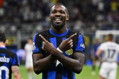 Inter vs Cagliari nella foto Marcus Thuram (Inter) Milano 14-04-2024 Stadio Giuseppe Meazza - San Siro Campionato Serie A TIM - 32a giornata foto Roberto Garavaglia/Agenzia Aldo Liverani sas/ AGENZIA ALDO LIVERANI SAS