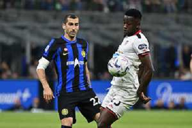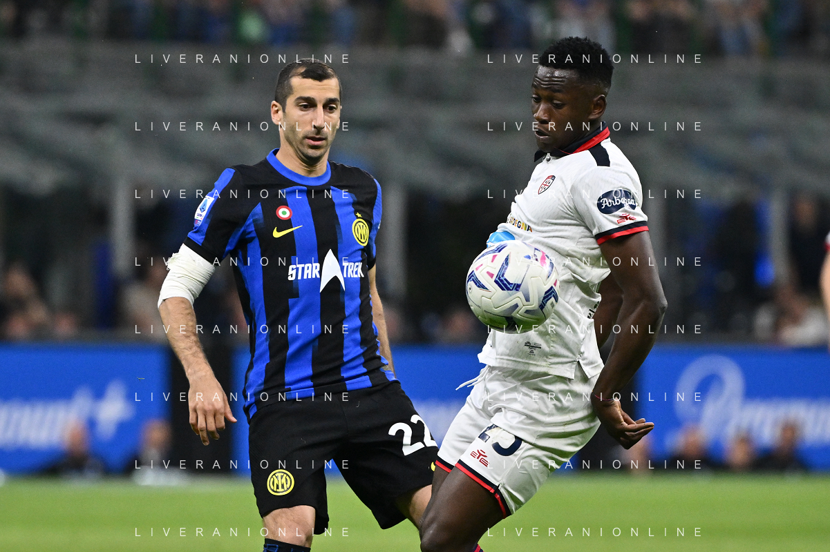 Inter vs Cagliari nella foto Henrikh Mkhitaryan (Inter) e Ibrahim Sulemana (Cagliari) Milano 14-04-2024 Stadio Giuseppe Meazza - San Siro Campionato Serie A TIM - 32a giornata foto Roberto Garavaglia/Agenzia Aldo Liverani sas/ AGENZIA ALDO LIVERANI SAS