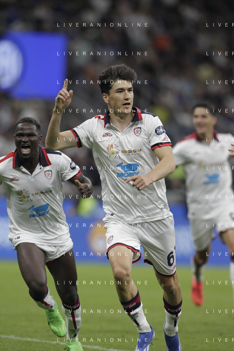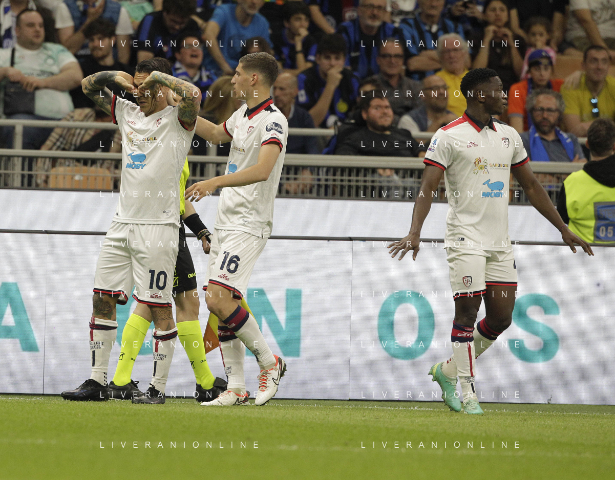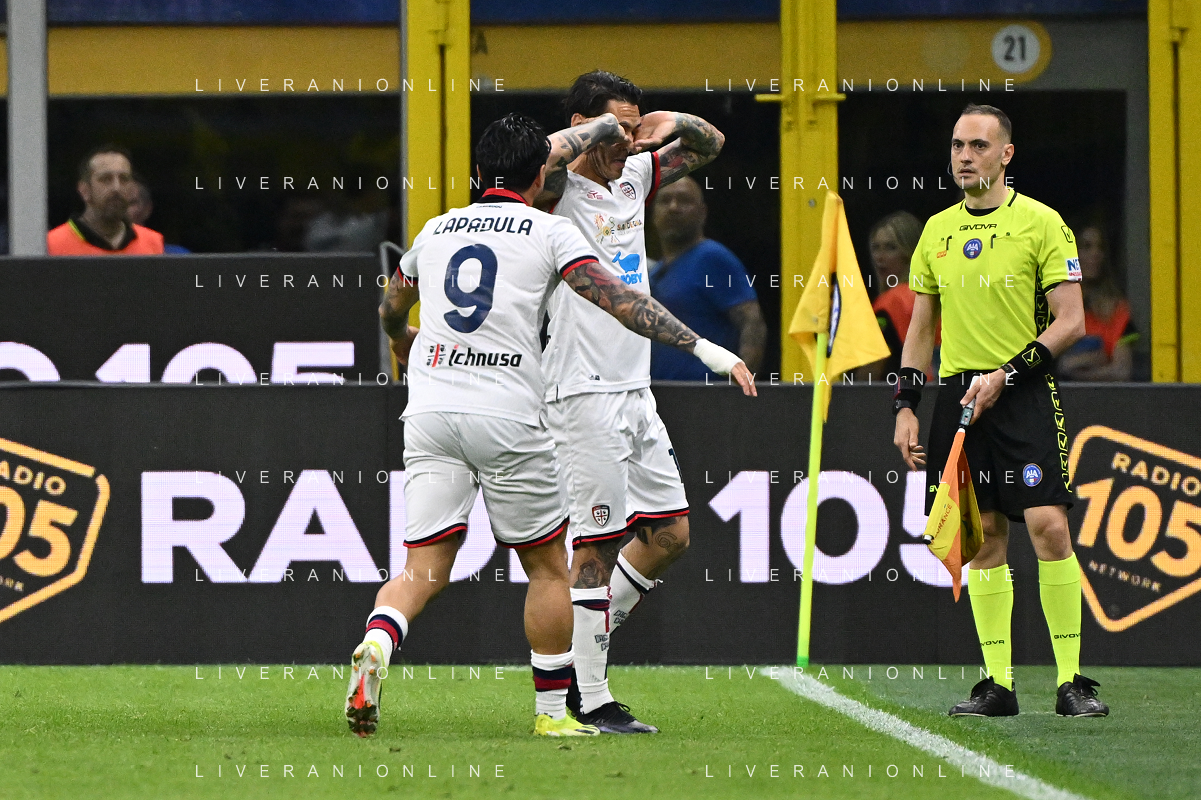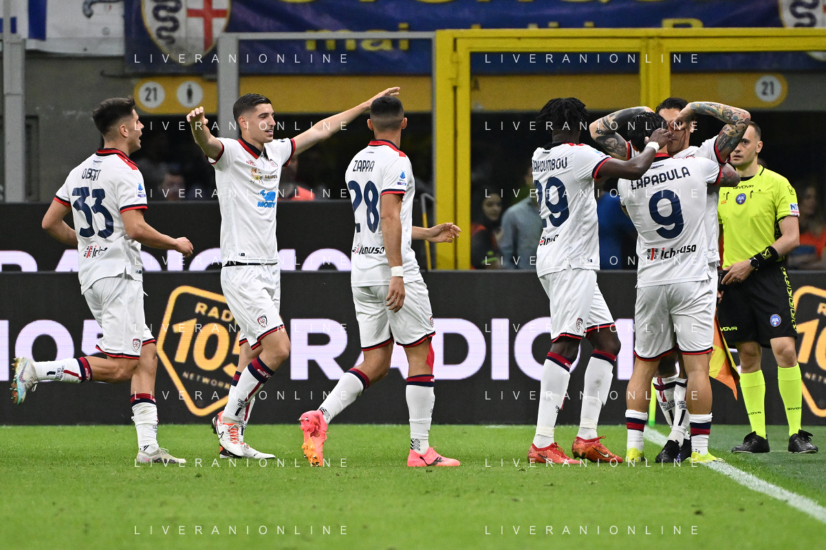 Inter vs Cagliari nella foto esultanza Cagliari dopo il gol del 2 a 2 Milano 14-04-2024 Stadio Giuseppe Meazza - San Siro Campionato Serie A TIM - 32a giornata foto Roberto Garavaglia/Agenzia Aldo Liverani sas/ AGENZIA ALDO LIVERANI SAS