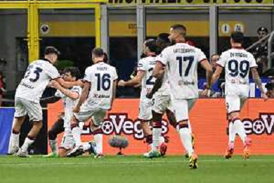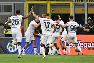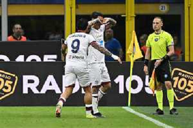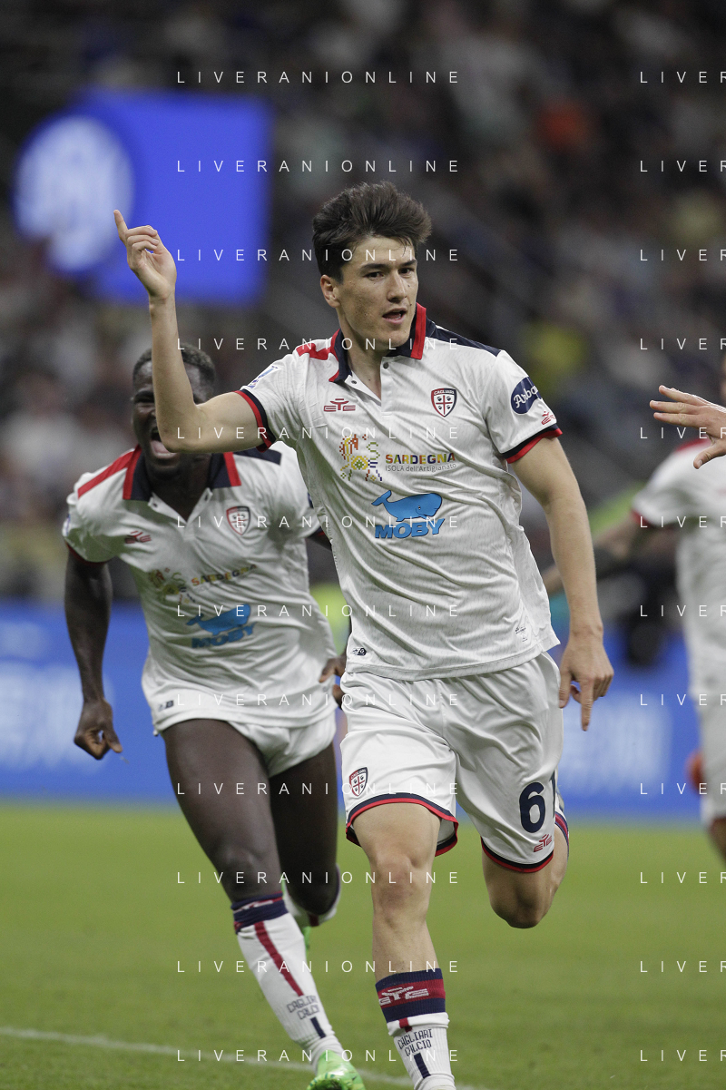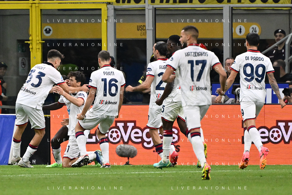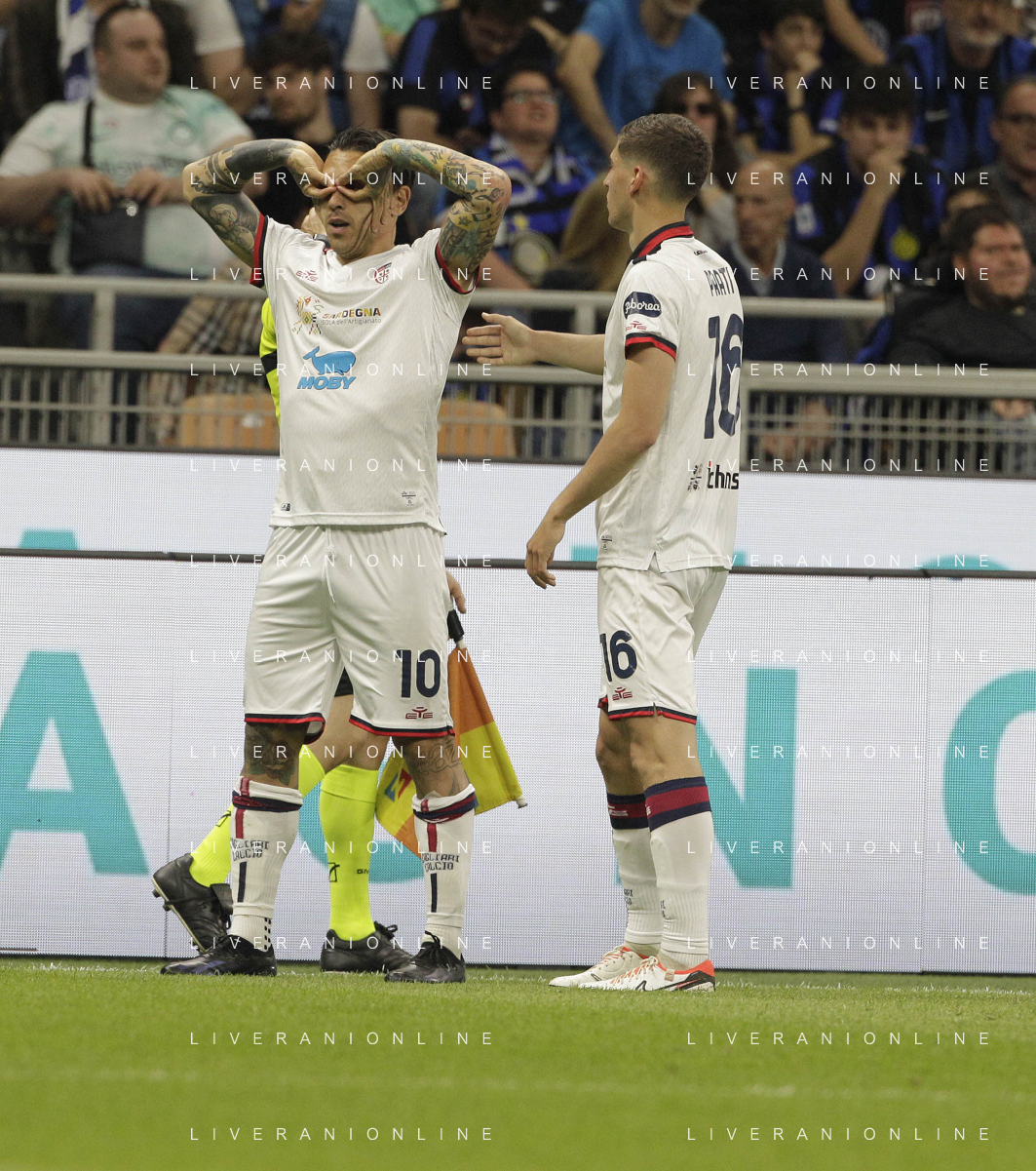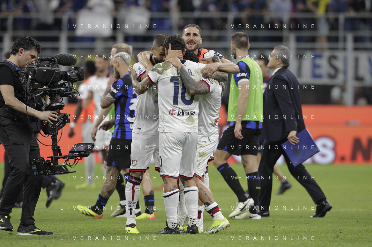 Inter vs Cagliari nella foto esultanza Cagliari dopo il gol del 2 a 2 Milano 14-04-2024 Stadio Giuseppe Meazza - San Siro Campionato Serie A TIM - 32a giornata foto Roberto Garavaglia/Agenzia Aldo Liverani sas/ AGENZIA ALDO LIVERANI SAS