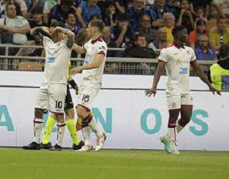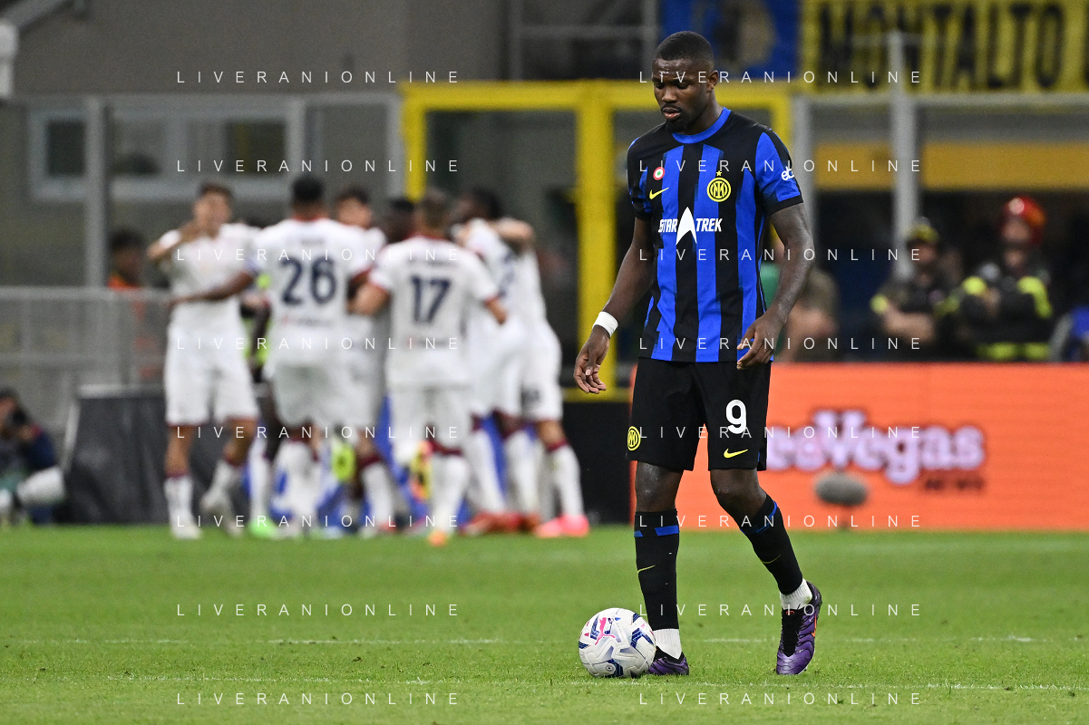Inter vs Cagliari nella foto delusione Marcus Thuram (Inter) ed esultanza Cagliari dopo il gol dell'1 a 1 Milano 14-04-2024 Stadio Giuseppe Meazza - San Siro Campionato Serie A TIM - 32a giornata foto Roberto Garavaglia/Agenzia Aldo Liverani sas/ AGENZIA ALDO LIVERANI SAS