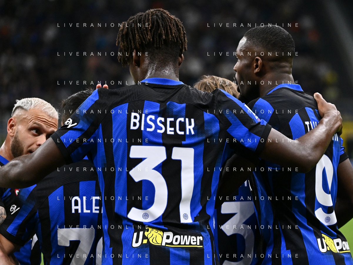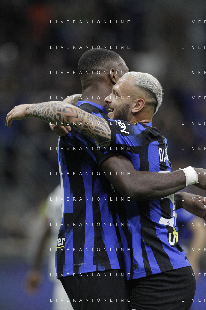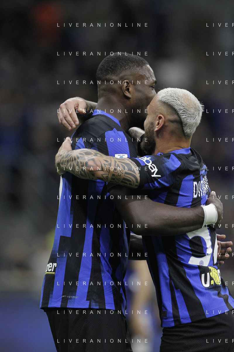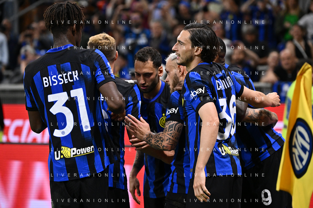 Inter vs Cagliari nella foto esultanza Inter dopo il gol del 2 a 1 Milano 14-04-2024 Stadio Giuseppe Meazza - San Siro Campionato Serie A TIM - 32a giornata foto Roberto Garavaglia/Agenzia Aldo Liverani sas/ AGENZIA ALDO LIVERANI SAS