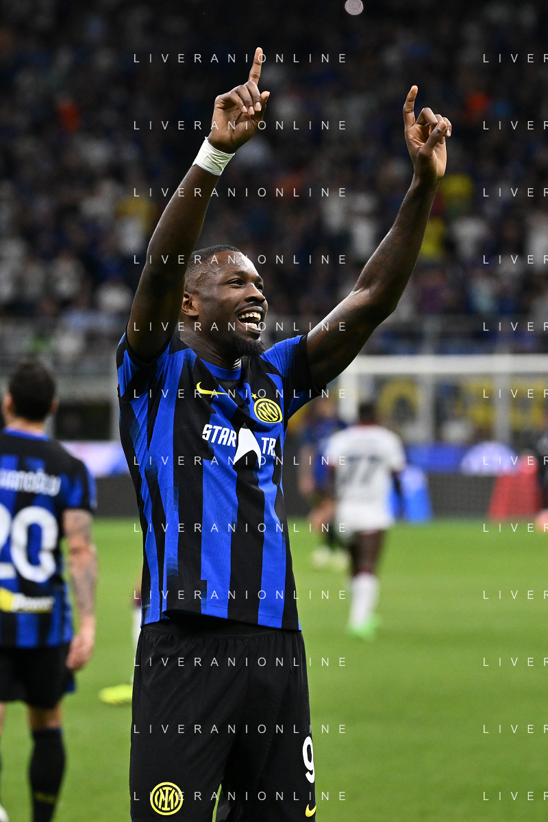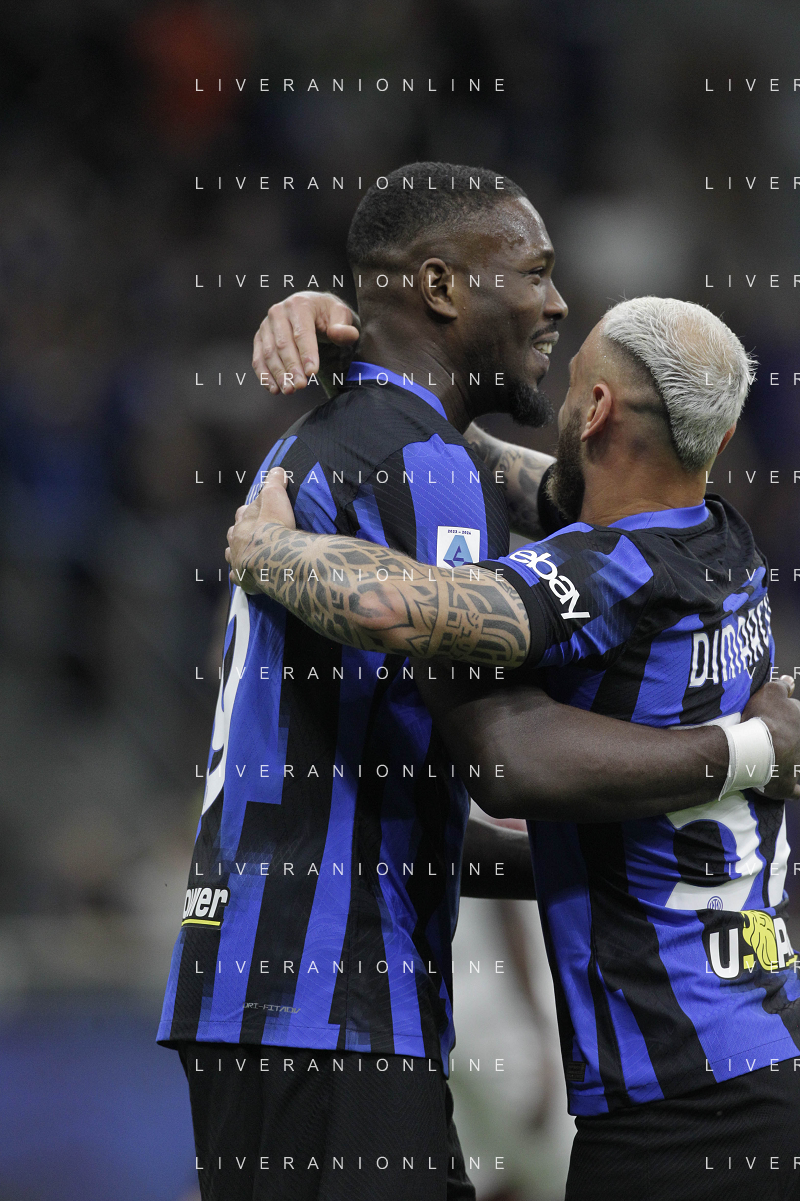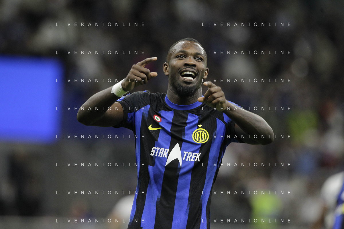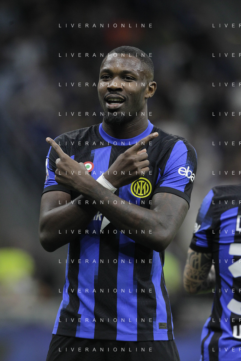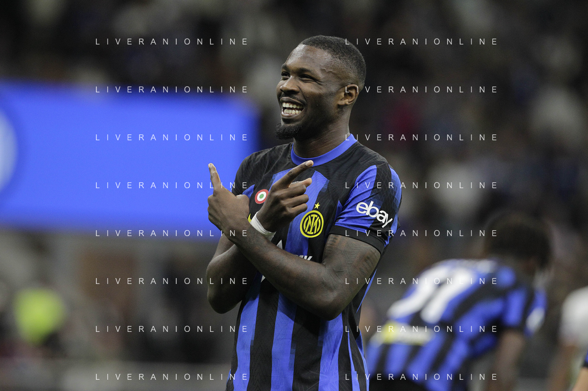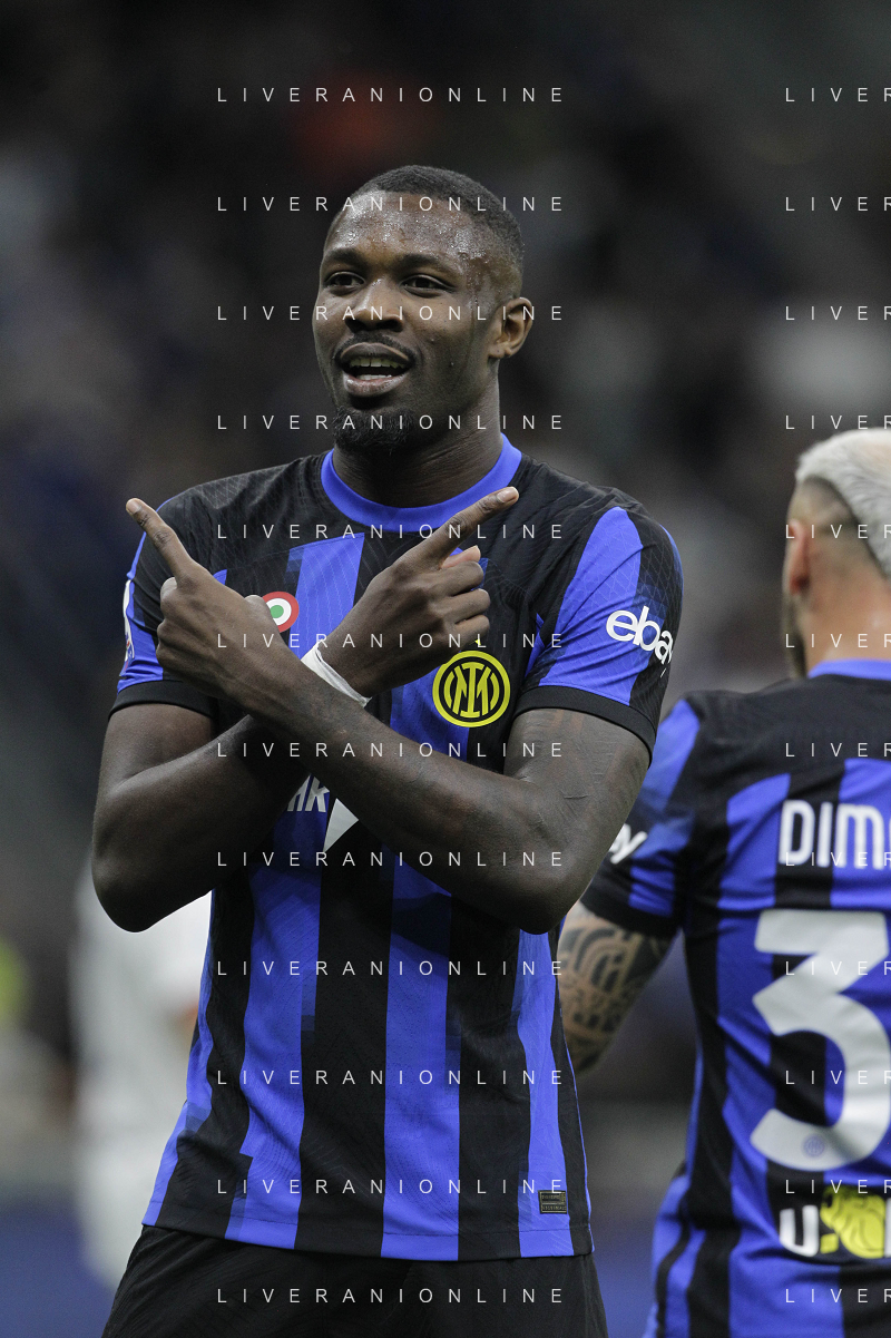 Inter vs Cagliari nella foto Marcus Thuram (Inter) segna il gol dell'1 a 0 Milano 14-04-2024 Stadio Giuseppe Meazza - San Siro Campionato Serie A TIM - 32a giornata foto Roberto Garavaglia/Agenzia Aldo Liverani sas / AGENZIA ALDO LIVERANI SAS