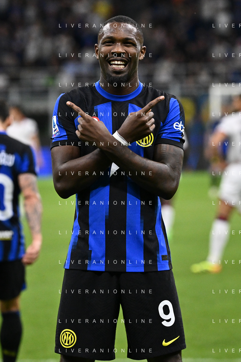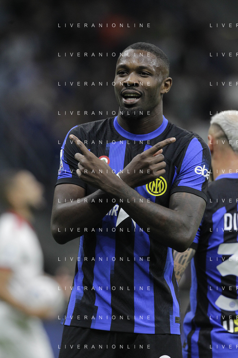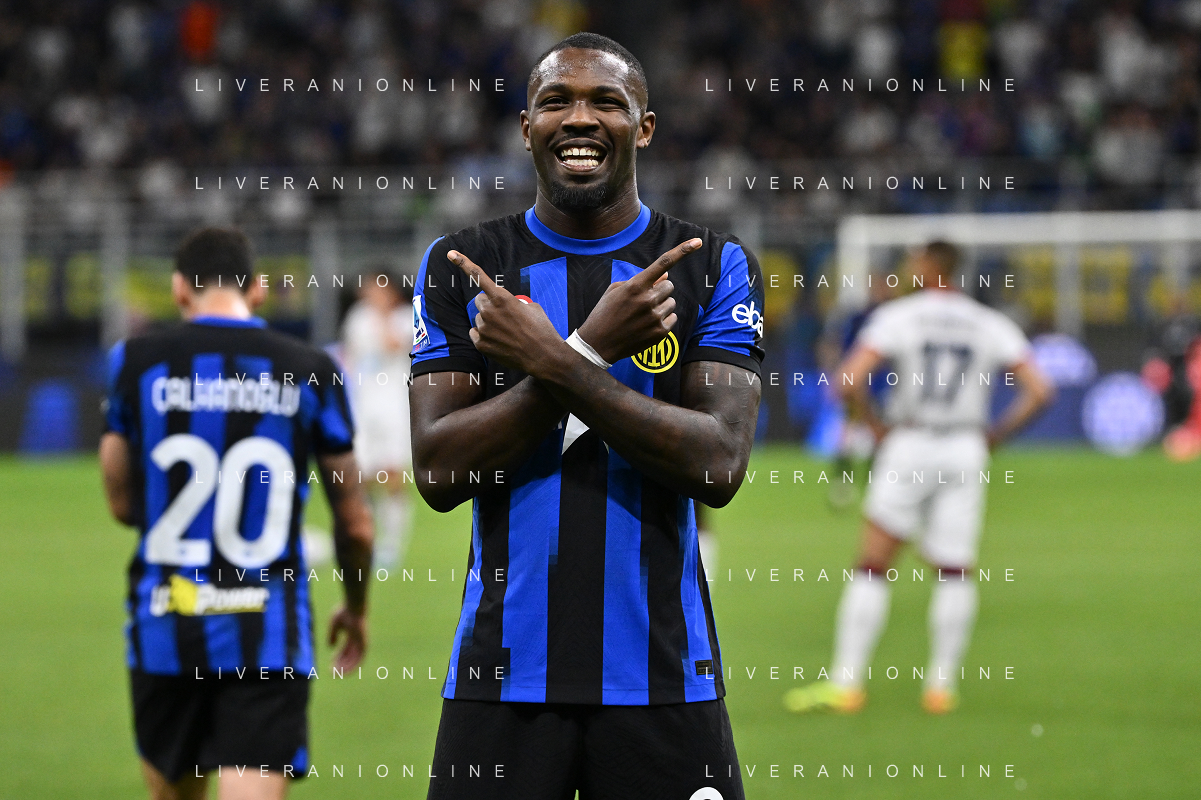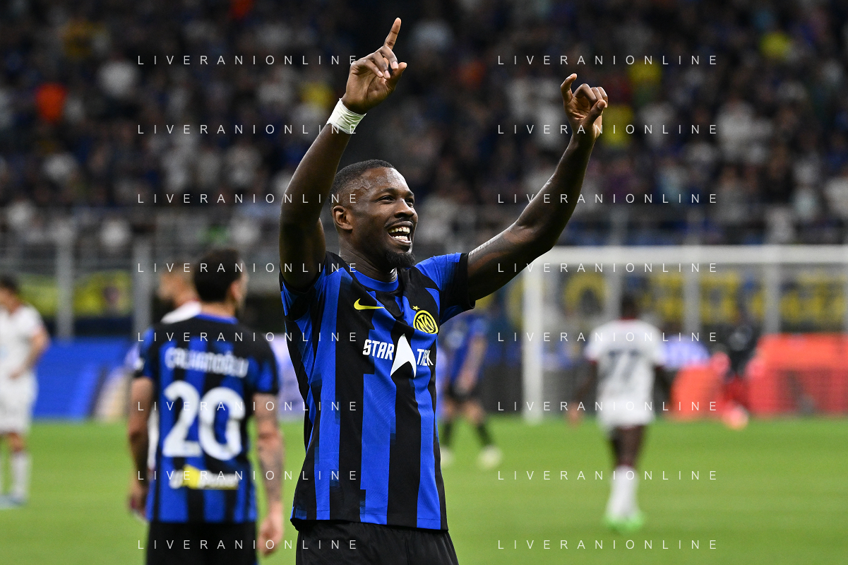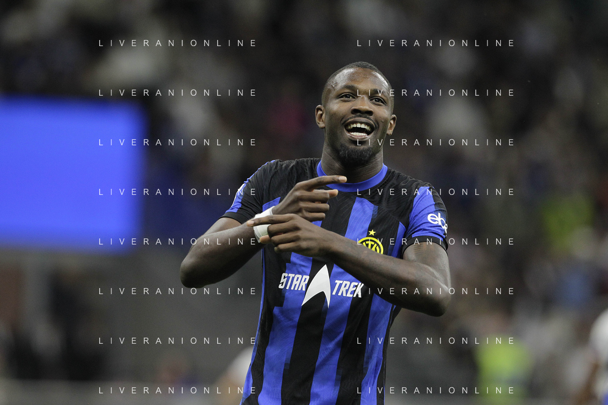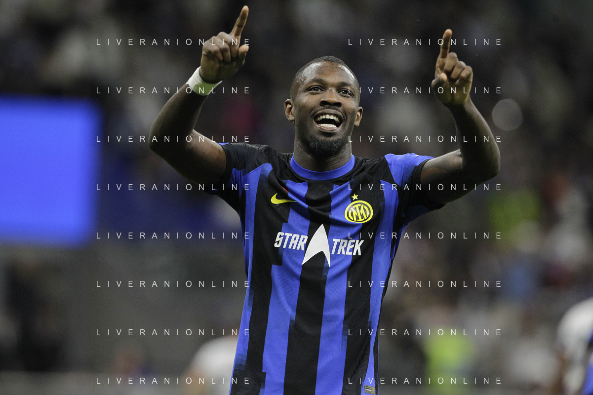 Inter vs Cagliari nella foto Marcus Thuram (Inter) segna il gol dell'1 a 0 Milano 14-04-2024 Stadio Giuseppe Meazza - San Siro Campionato Serie A TIM - 32a giornata foto Roberto Garavaglia/Agenzia Aldo Liverani sas / AGENZIA ALDO LIVERANI SAS