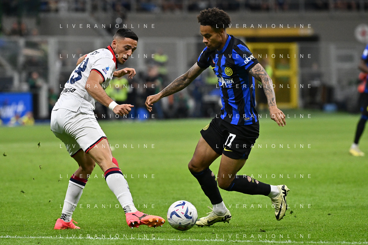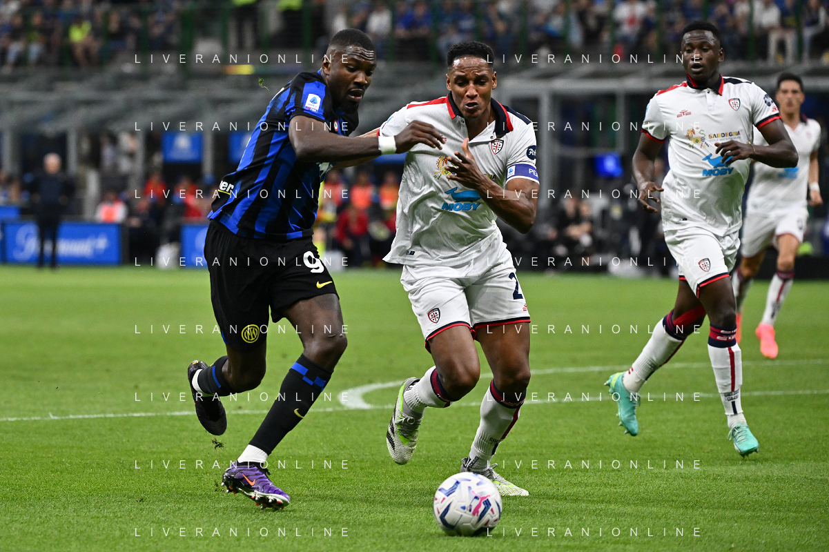 Inter vs Cagliari nella foto Gabriele Zappa (Cagliari) e Tajon Trevor Buchanan (Inter) Milano 14-04-2024 Stadio Giuseppe Meazza - San Siro Campionato Serie A TIM - 32a giornata foto Roberto Garavaglia/Agenzia Aldo Liverani sas/ AGENZIA ALDO LIVERANI SAS