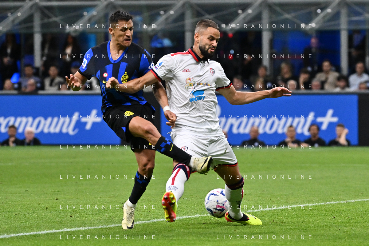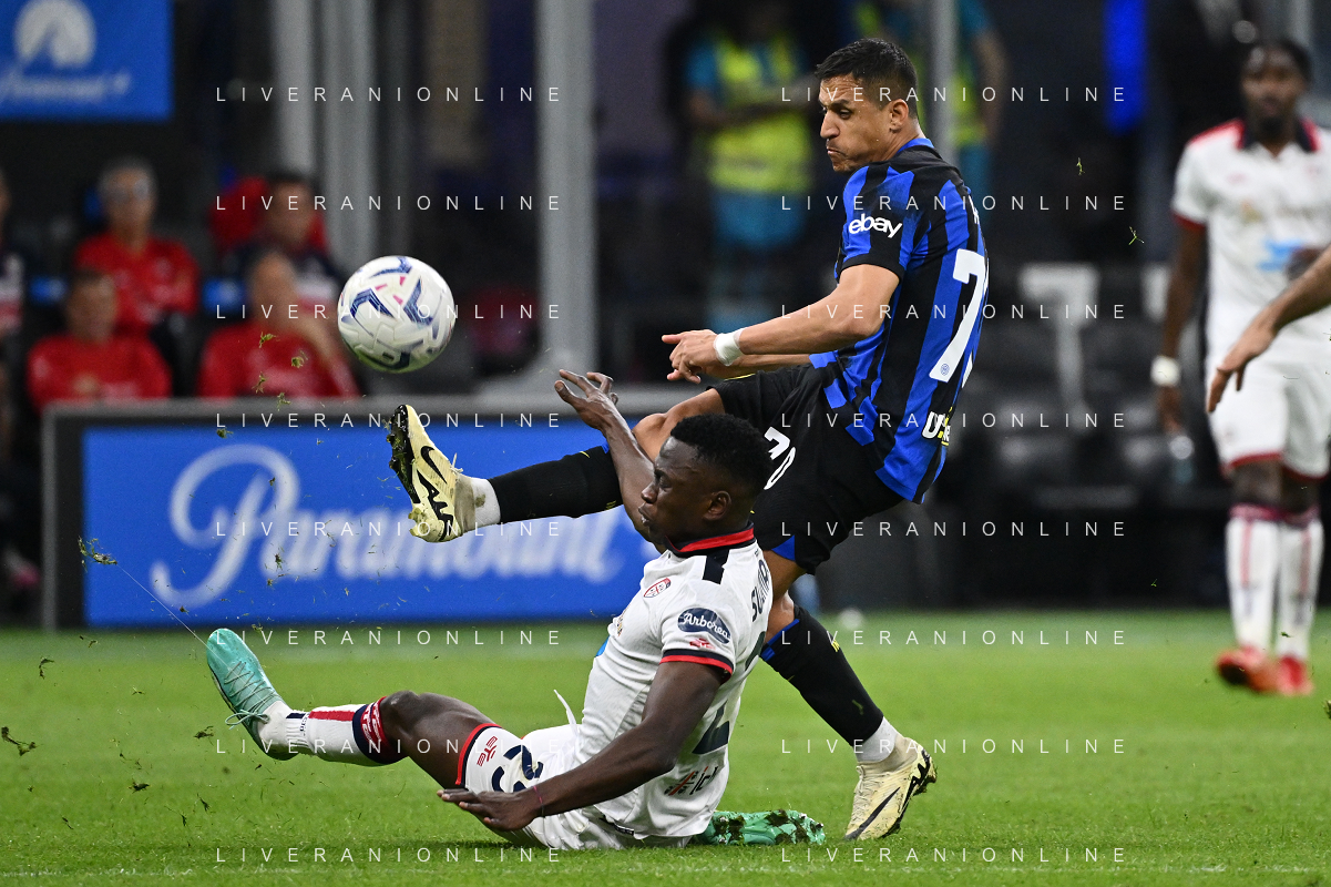 Inter vs Cagliari nella foto Alexis Sanchez (Inter) e Ibrahim Sulemana (Cagliari) Milano 14-04-2024 Stadio Giuseppe Meazza - San Siro Campionato Serie A TIM - 32a giornata foto Roberto Garavaglia/Agenzia Aldo Liverani sas/ AGENZIA ALDO LIVERANI SAS