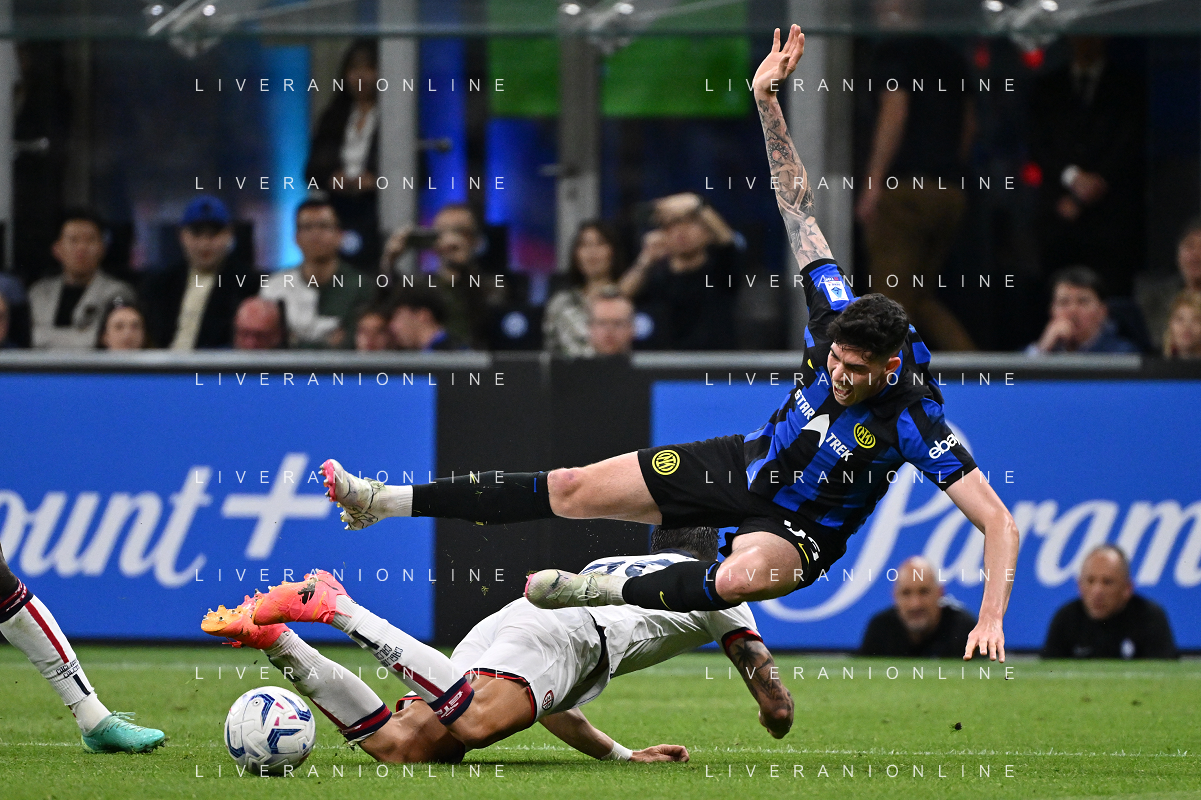 Inter vs Cagliari nella foto Alessandro Bastoni (Inter) fermato da Alessandro Di Pardo (Cagliari) Milano 14-04-2024 Stadio Giuseppe Meazza - San Siro Campionato Serie A TIM - 32a giornata foto Roberto Garavaglia/Agenzia Aldo Liverani sas/ AGENZIA ALDO LIVERANI SAS