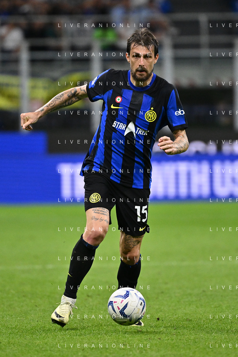 Inter vs Cagliari nella foto Francesco Acerbi (Inter) Milano 14-04-2024 Stadio Giuseppe Meazza - San Siro Campionato Serie A TIM - 32a giornata foto Roberto Garavaglia/Agenzia Aldo Liverani sas/ AGENZIA ALDO LIVERANI SAS